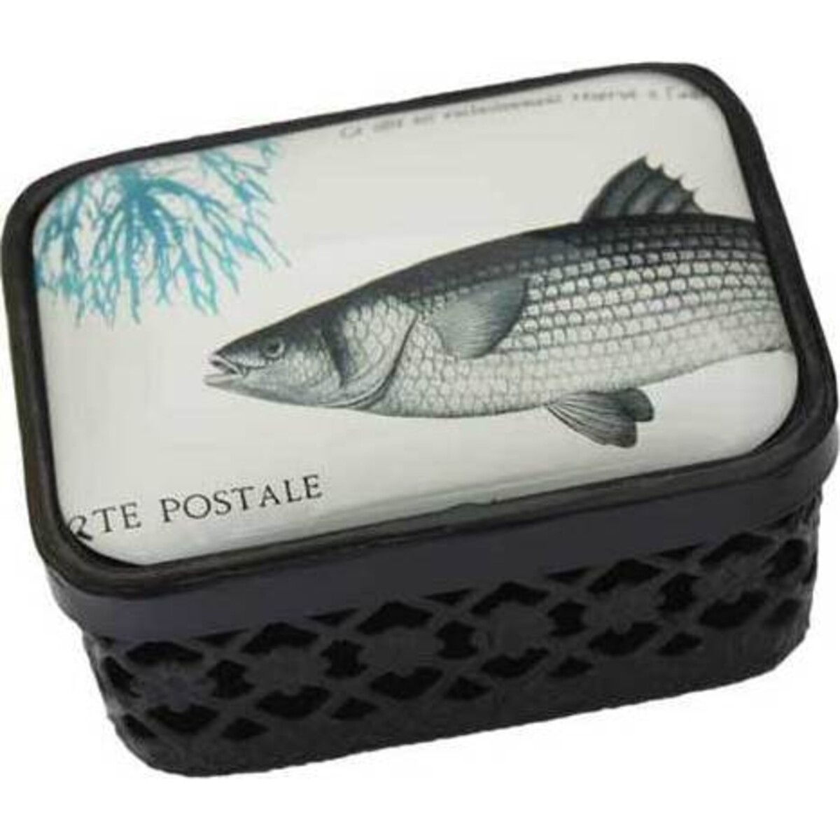 The lid is white a features a big scaly fish. The sides are the same material as the body of the box. Made from high quality materials, this is a very versatile piece where one can store small items and prevent clutter.