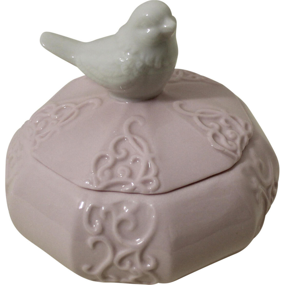 When on the next trinket binge, place your bet on this beautifully crafted piece made from ceramic. The ivory white colour, the tiny bird sitting atop the case, the easy to open top and the hexagonal shape given to the piece makes it really unique in its look, the body of the case has a little floral pattern that gives it a fine textured feel. The trinket case is all of 10 cm in height and its diameter its diameter is 9.5 cm making it a large enough piece with an adequate kind of space for a great deal of your collection. Give your vanity area a touch of charm and elegance with this piece and at the same time make sure to have your trinket well-kept and safe from damage in cases especially created for such service. The case opens with ease as you could simply hold the tiny birdie that gives the top a good grip. The inner cavity is also large enough to safe keep your rings earrings and even bracelets and chains.