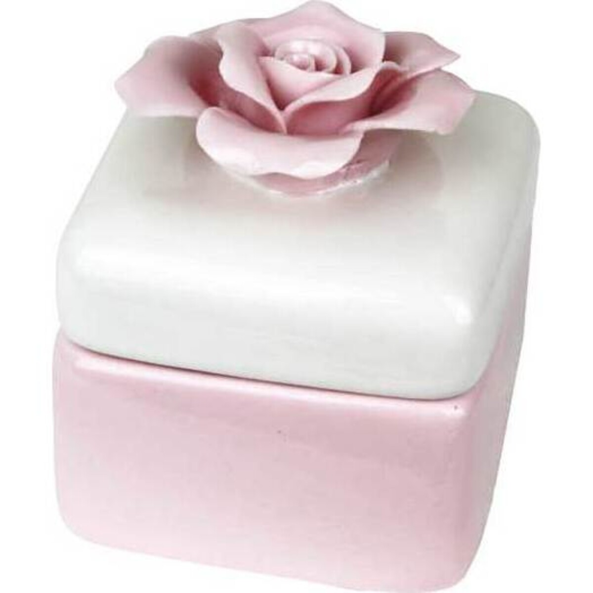 Trinket Box Petal Rose Square measures 6x6x7 cm and is made using porcelain material. It is useful aid for storing ornaments and jewellery safely. It is a faint pink colour and features a pink rose at the top of its lid. This makes it look appealing and lady - like in particular. This item can make a good gift product for a female friend during a special romantic occasion. It has a sassy out, which makes it a one - of - a - kind artistic item for ladies. Couples could purchase them for preserving nuptial rings before and after their wedding day.