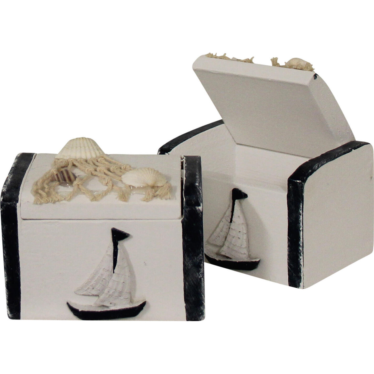 The box is white and blue which declares its delightful marine feel. Made from MDF, it wears the look of the sea through its shells and sailboat design on the body. With a spacious interior which will provide a home for most of your collection, the box comes with features that makes it the perfect choice for all kinds of trinkets, be it earrings studs, rings or even chains. The large 25 cm length and 15 cm height gives its inner compartment adequate depth making it a large enough space for several pieces from your collection. The material used in creating this safe box for your trinkets adds to its durability. Elegantly simple in white and blue-its hinged top opens smoothly. Will look like a décor piece more than an organizer owing to its pretty adornments like the sailboat on the front and the shells on the top.