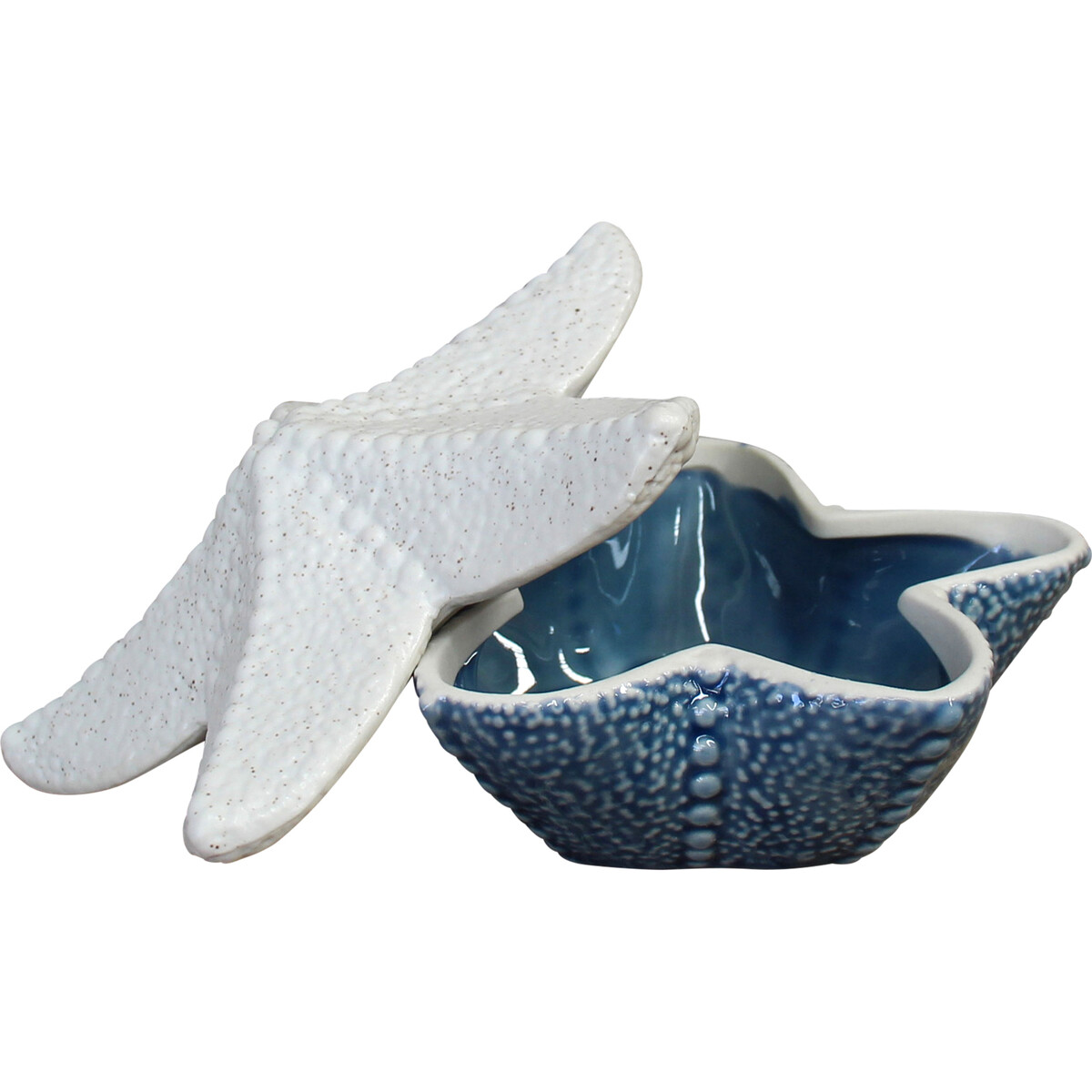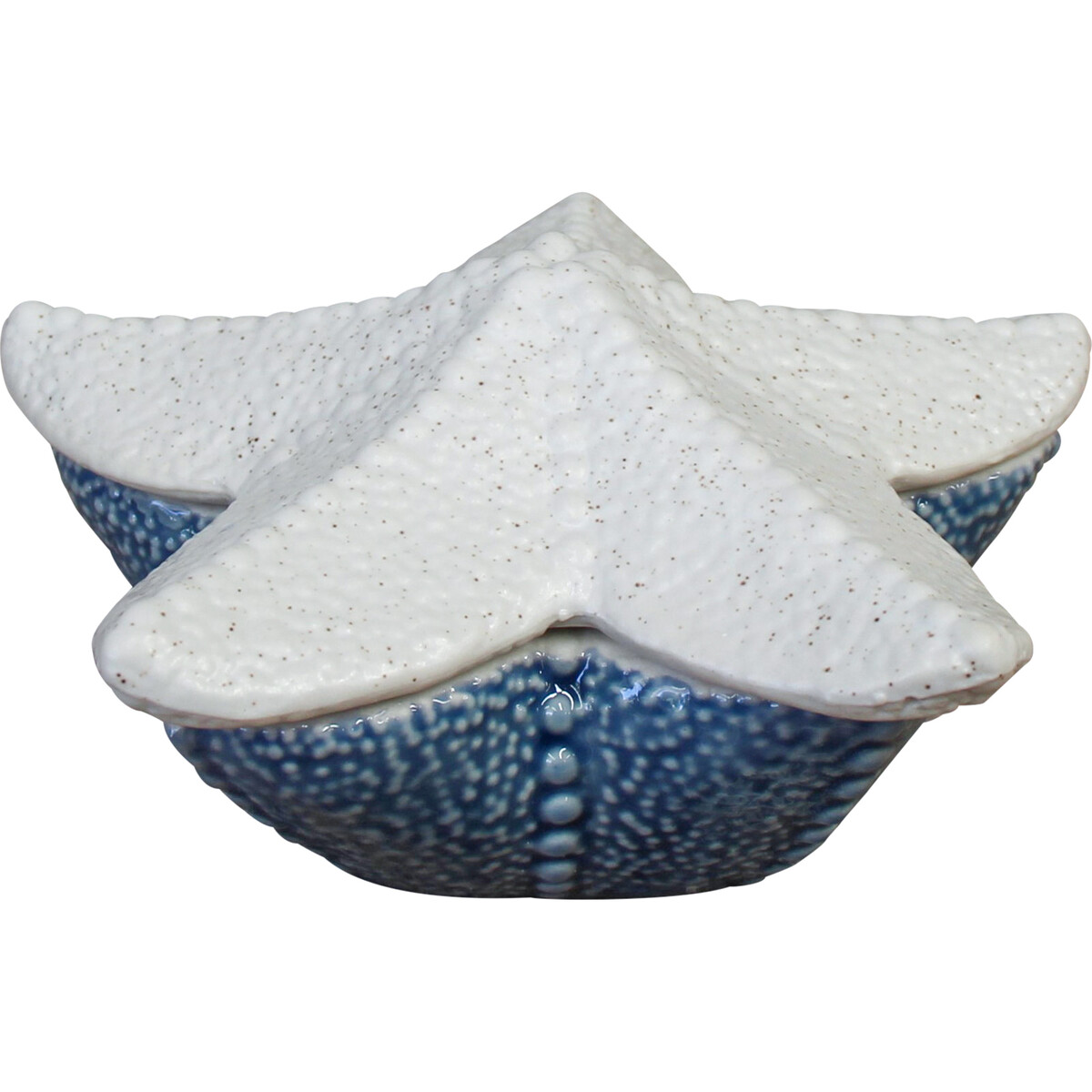 One of these items is this blue/white trinket box to help you keep your tiny precious jewellery and coins organized and safe. The design and artistic work that goes into executing this trinket box helps to produce a starfish replica in white colour. Measuring 14.5cm x 14cm x 7cm, this magnificent ceramic trinket box features to main parts, the storage compartment and the lid. The storage space comes in a starfish-like design and is decorated in blue. To match the design of the storage compartment and ensure that your tiny valuables are stored away safely, a starfish-inspired white lid is included. The different colours not only help to create a distinction between the lid and storage box but also offers some stylish contrast.