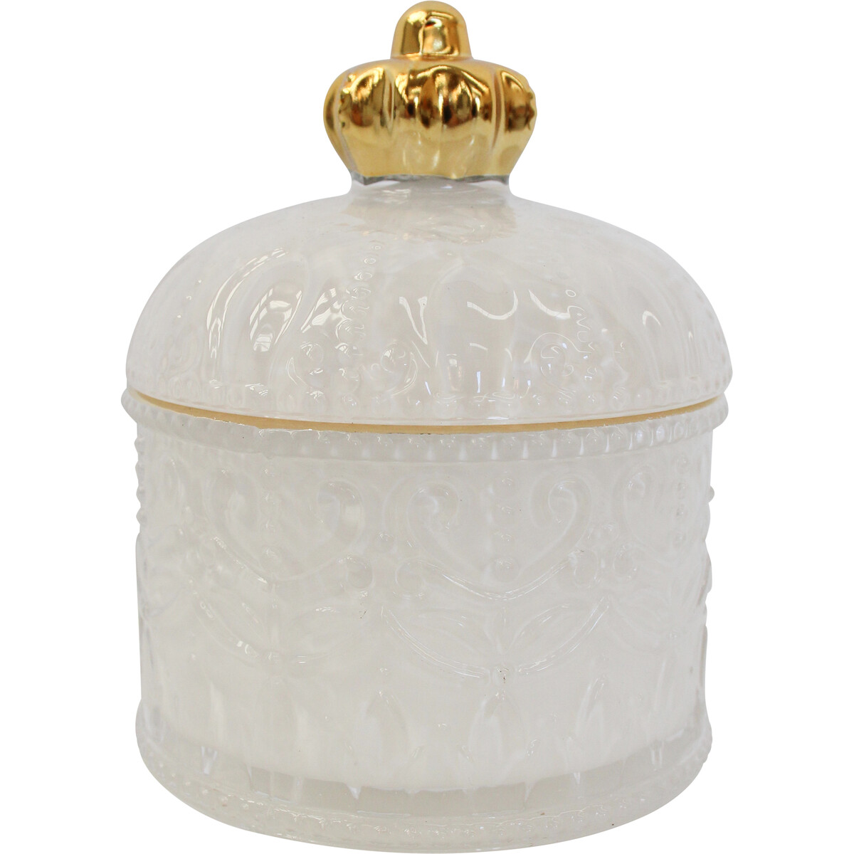 What makes this Trinket Crown White stand out from every other glass ware decorative ornament which you may already have on display is the versatile, all-encompassing ornamental functionality which this eclectic piece possesses. Given its predominantly crystal white palette, it would be suitable for use in various spatial setting such as in residential homes, working spaces, churches, restaurants and every other space where there is a need for heightened decorative experience. It would also be perfect for use in decorating special occasions such as weddings, Christmas celebrations, etc.