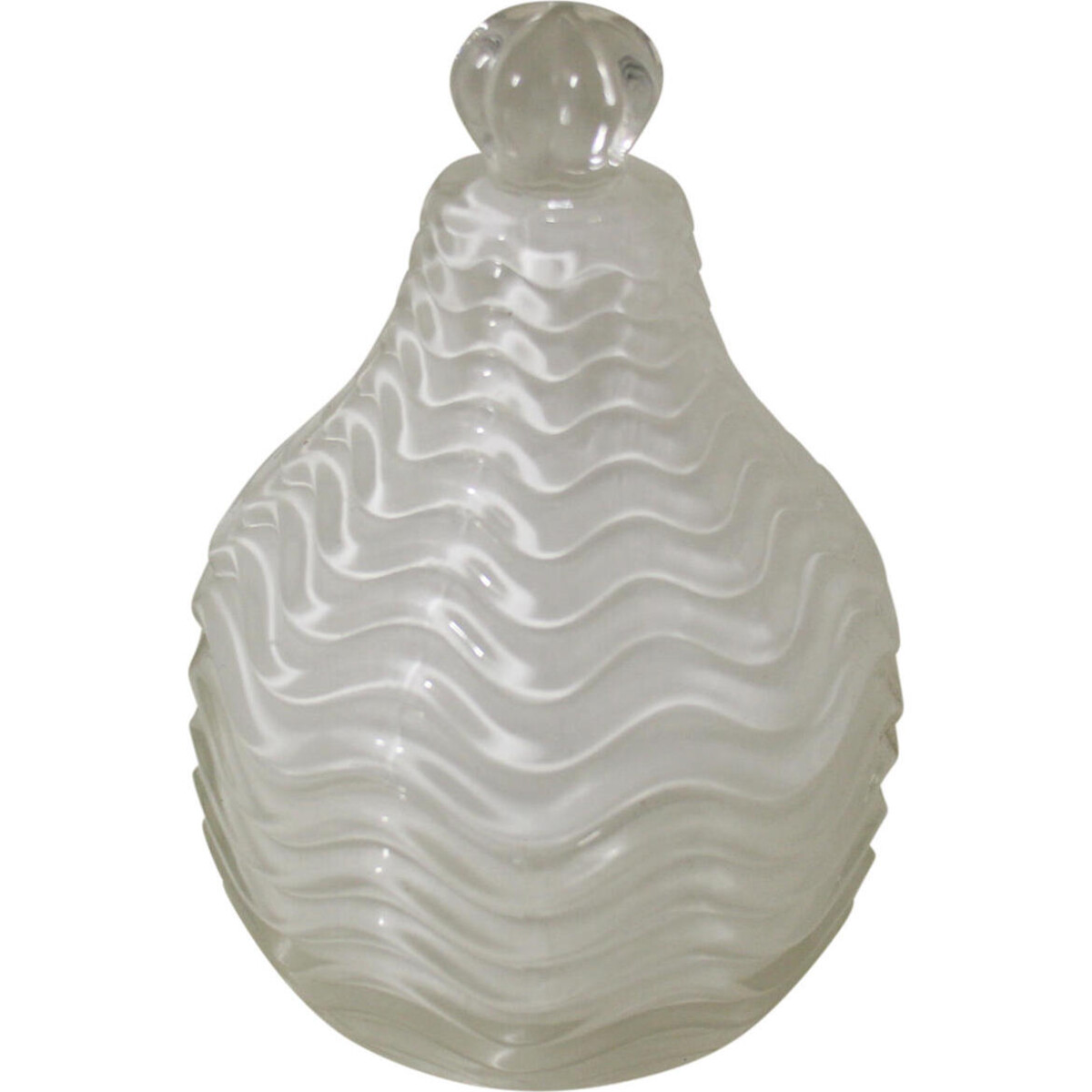 The upper portion of this glass made case rises up elegantly - its wave like pattern also rising in the most delightful of ways - very modern and chic, much like design from the house of Dior that define the beauty of simplicity in the classiest of ways. Here is a wonderful means to not just give a safe haven to your trinkets but also ensure that they are always within reach and looking their best. The glass case has a knob to hold up the upper half to allow a superb entry for all your little treasures. The delightful design, the eloquent manner in which glass has been given a classy look. It is this aspect of its spaciousness and the design that makes it a great means to accent your vanity space. The tiny case is All of 13 cm in height while its dimeter at its maximum is 8.5 cm that taper to the top and sits elegantly on its round base.