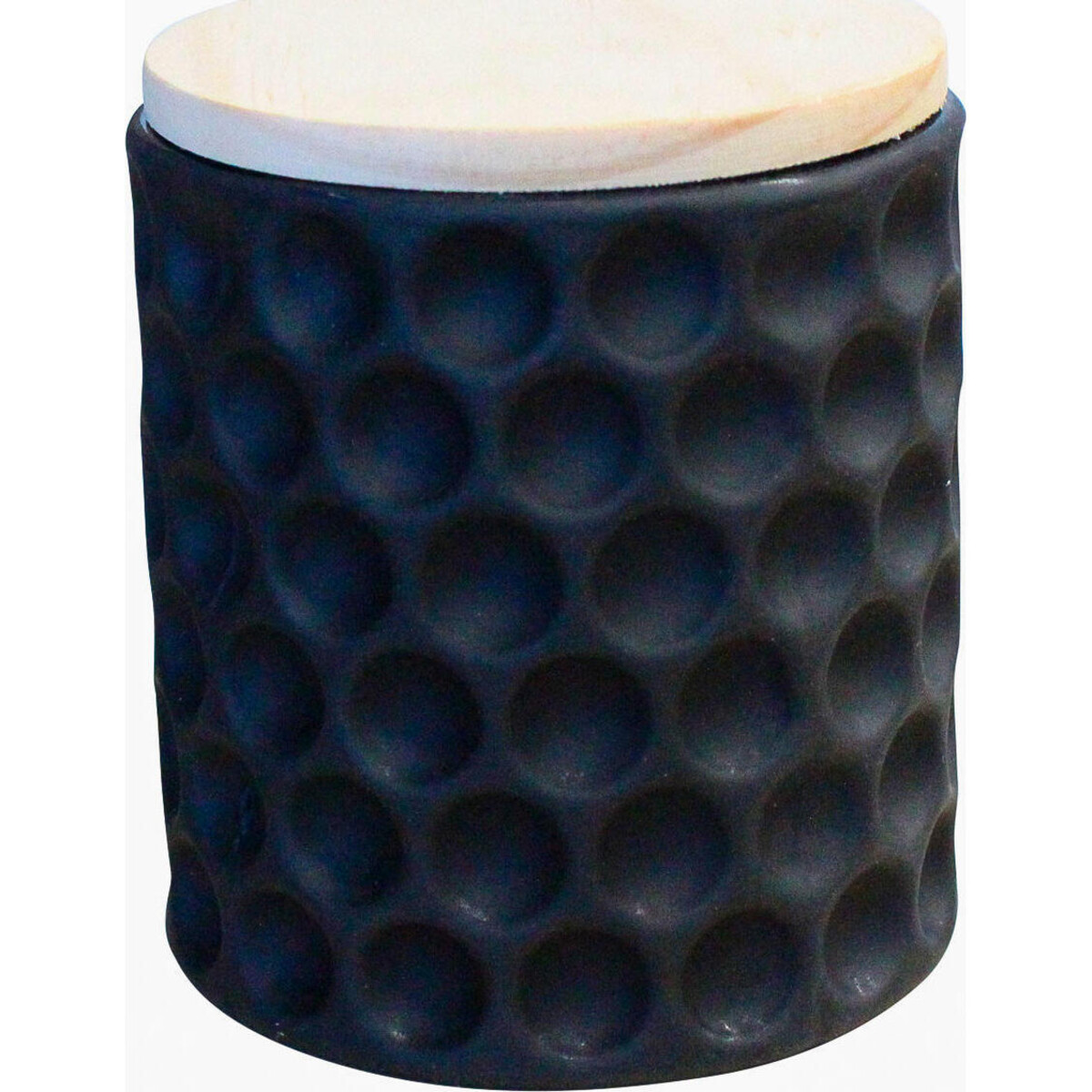 Made of matt coloured black coloured glass, this opaque glass jar has a very modern kind of stylish flair that will be as desirable in terms of its sturd8ness as for its very modern chic looks, the bubble pattern on its body gives its structure a sturdiness and thickness. The top is made of timber that in fact adds a touch of natural colour to its other wise very modern looks. The bubble pattern adds to its charm. could be used like any other trinket case the height of the jar is 10.5 cm while its diameter is 8 .5 cm making it truly compact - you could in fact use it for keeping spices or rare herbs if you so desire as the lid on top will keep things safe and tightly packed in. the textured exterior helps keep the jar from slipping from your hands owing to the grip friendly design.