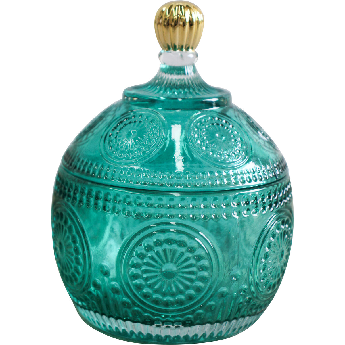 It impresses you with its beautiful design as well as the solid glass body. sits neatly on any table top and draws attention to its motive pattern. If you are in love with the idea of collecting more and more trinkets and have been wondering how to keep them safer and easier to handle especially when you are in a hurry- the right kind of an organiser can help you and here is one which not only adds to the ease of keeping your trinket collection better organised but also helped them bringing a Splash of colour to your dresser on your table top. You could place it on your bedside or on the dresser table aur even your study. It's quite versatile in its usage and can be used for keeping spices and tea bags. The size is neat and compact enough with the height of around 12 cm and a diameter of 9 CM.