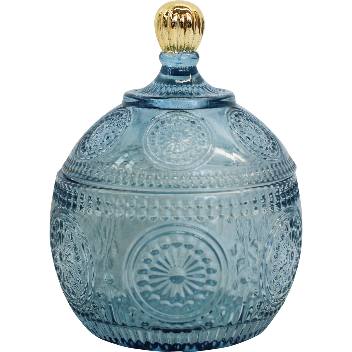 It's the colour of the ocean on an Icy clear cold day- the blue is spike with a little silver tone and this colour effect has been best captured in this glass made trinket box. Enhanced further by the gorgeous motive pattern that is embossed all across its outer body - this is an organiser which you will love to possess not only because you want to give your ticket collection a great place to rest but also because you don't mind that extra little Splash of colour and pattern in your spaces.