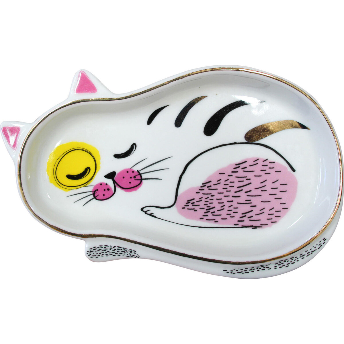 Keep safe the trinket that you take off in hurry or simply keep them ready for you to access with ease before you begin dressing up on this ceramic made tray that features a sleeping cat. Will look rather pretty sitting atop your dresser adding a certain kind of quirkiness and beauty to your spaces and at the same time ensuring that your trinkets remain in safe space meant only for them.