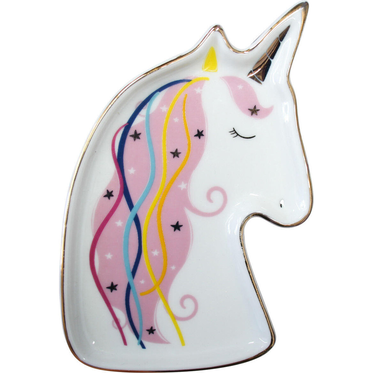 While it is always better to have your trinkets placed safely inside a trinket case , while taking them off, they tend to fall off or we tend to leave them in odd laces where their tiny size usually makes them disappear in the maze of things-here is that perfect compact trinket tray where the trinkets could simply be placed right after you take them off, or when you need to keep the in one place and keep them ready to wear within reach -simply place them on this tray and your dressing up time will be reduced in terms of time consumption. Made of ceramic and shaped like a unicorn, it is perhaps more charming than even the most mythical of stories connected to this creature. All of 14 cm in length, the horn and the unicorn's head is so clearly marked that it would be difficult to give its design a miss. The beautiful mane, the gold edged rim and the creamy white coloured ceramic acts to make it seem pretty.