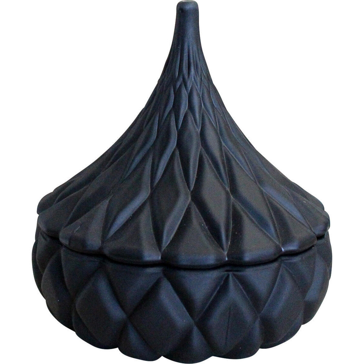 Made from glass, this gorgeous piece comes fitted with a top that is easy to lift being pointy at the top giving you that perfect grip on the glass made body the trinket case itself is 14 cm in height while its lower base is the receptacle for all your precious little possessions, made from glass it has been given this gorgeous charming finish in colour and cut that makes it as much a décor accessory as it is a n organizer. Flaunt it on your diner table if you please - keeping some special sprinkles in it or on the kitchen counter with some spices stored in them - of course its versatility comes as much from its great looks as it does from its large and spacious interiors. The diameter of this case makes it spacious option for many of your little treasures.