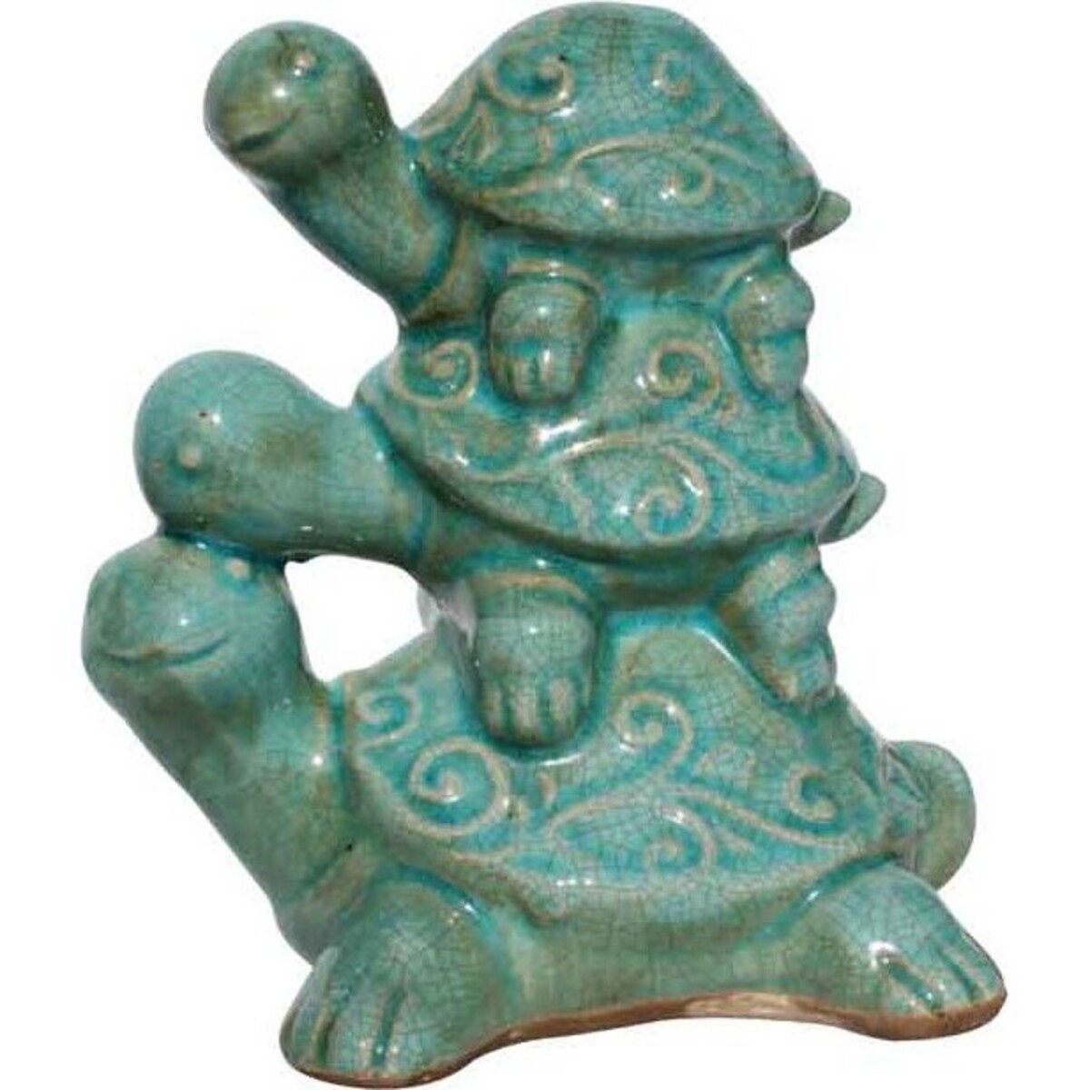 Besides the fact that this was made with a beautiful shade of blue green, it really is not the usual figurine in terms of its depiction. It is so interesting to see the obvious affection shared among the three. The biggest turtle found in the bottom raised its head up to the second one with a satisfied smile on its face. The second turtle bent its head to the first one on the bottom, giving it a kiss on the head. The third just has a cute grin of happiness.