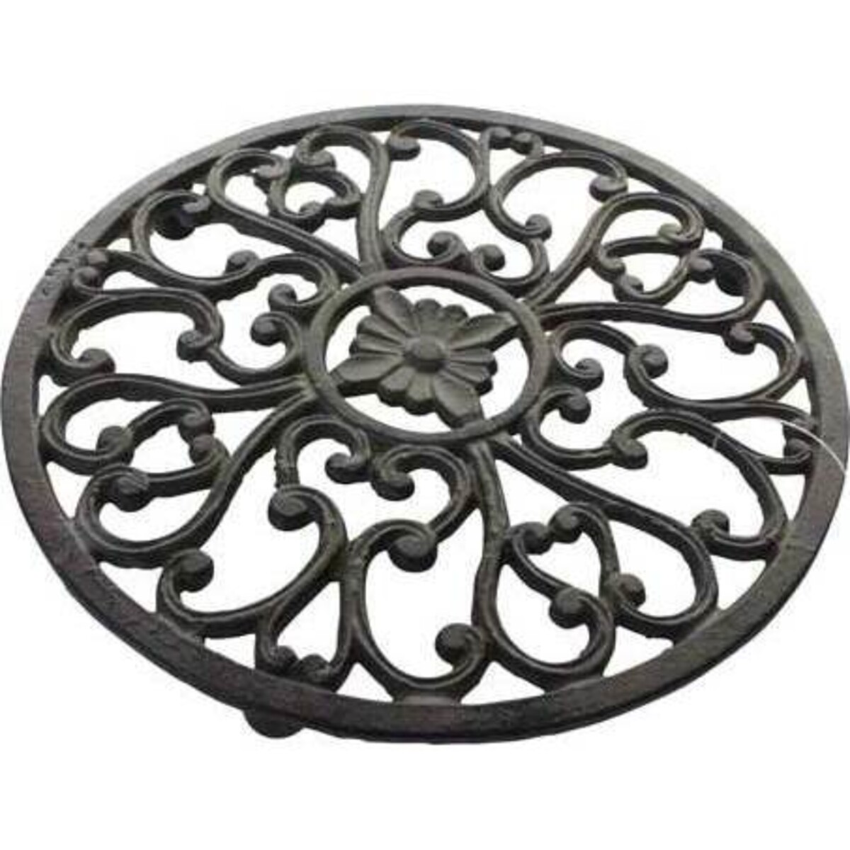 A trivet is an absolutely essential item that no kitchen should be without, and the Ailes large dark trivet is a fantastic well designed trivet that is suitable for bigger pots and pans. A trivet is crucial for any novice chef that regularly cooks food in the oven or on the hob. A trivet is more than just a form of protection, it's also an artistic element that can become a key feature in the kitchen. The Ailes large dark trivet is a beautifully designed form of protection that will defend tables and kitchen surfaces from the damage that can be caused by hot pans and trays. This essential kitchen item is elegantly designed and made from cast iron, helping to absorb the impact intense heat can have on a kitchen surface. The large cast iron dark trivet will be sure to catch the eye of homeowners and amateur chefs.