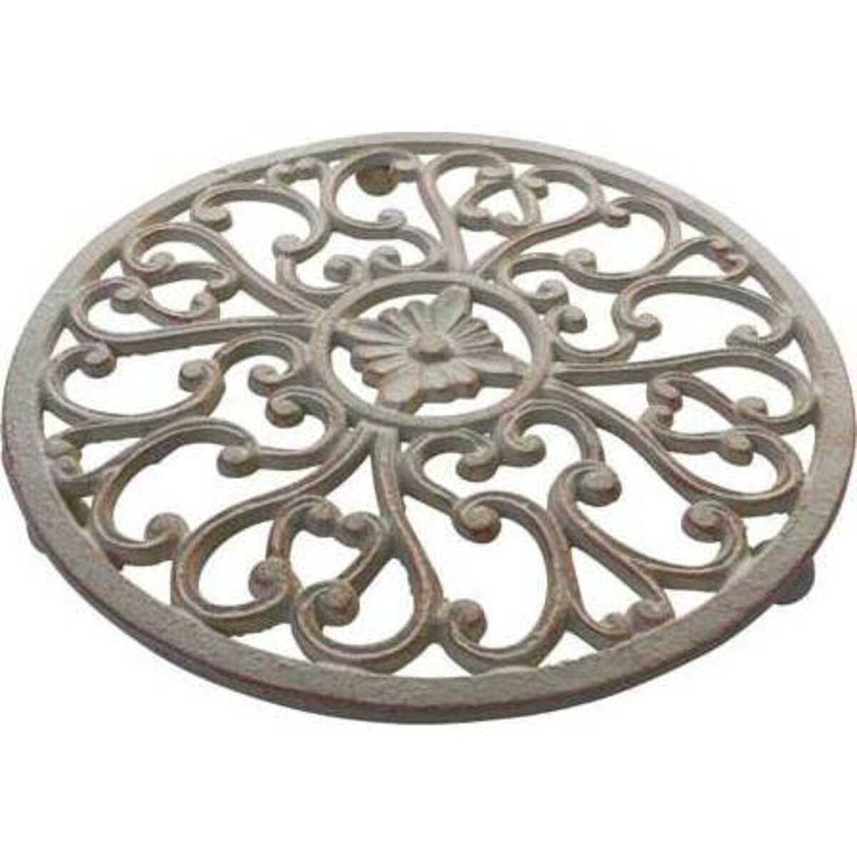 This Ailes Large Cream Trivet is not only functional, but also serves as a beautiful piece of d_cor for your table. You don't have to worry about sacrificing style just to protect your furniture. Its lovely swirled accents and floral center add an elegant touch to any table for any occasion. All your guests will certainly take notice and be asking where you got such a charming addition to your table.