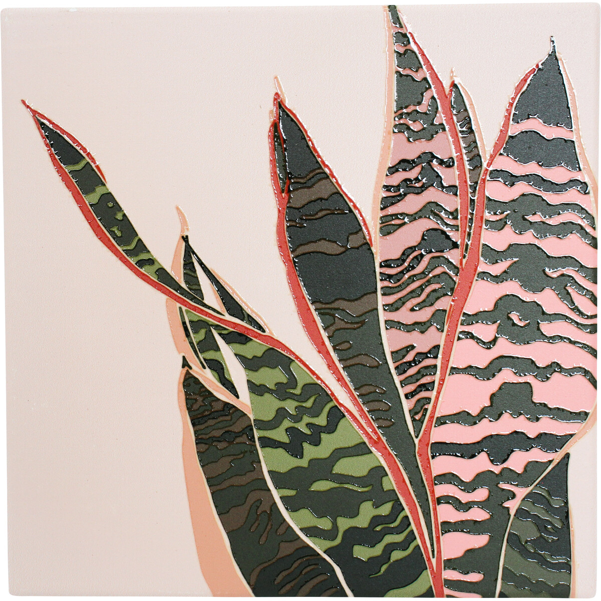 Showcasing the image of several leaves that are grouped together in a bunch, this Trivet Boho Leaves 1 is a highly ornamental trivet that strives at bringing the beauty of gardens into indoor decoration. The leaves are depicted in various shades of colours such as pastel pink and Ferrari red. The most predominant colours however are the light and deep shade of green. It is suitable for use on dining tables, end tables, side tables, office tables, living room centre tables, and whichever other table needs protection from being damaged by heat from serving ware.