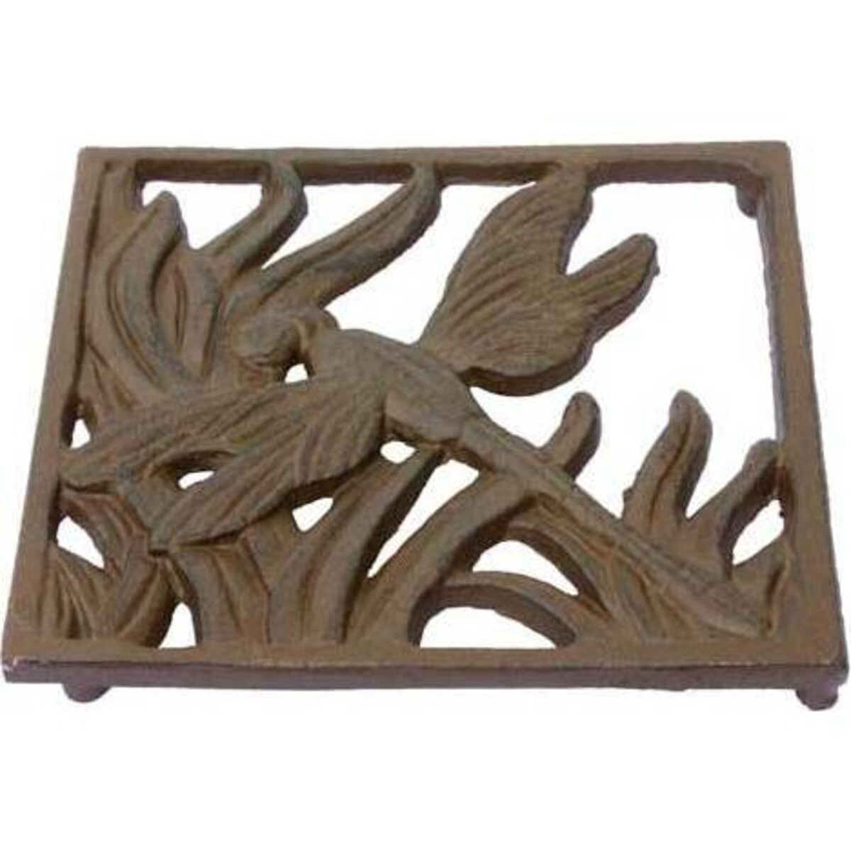 This brown metal trivet features the image of a dragonfly as it flies over plants. It's the perfect way to add a touch of the insect and nature to your table without going overboard. Often, it's the smallest details that can have the biggest impact. Everyone is going to love this charming and functional decorative accent, so don't be surprised if they ask where they can get one of their own.