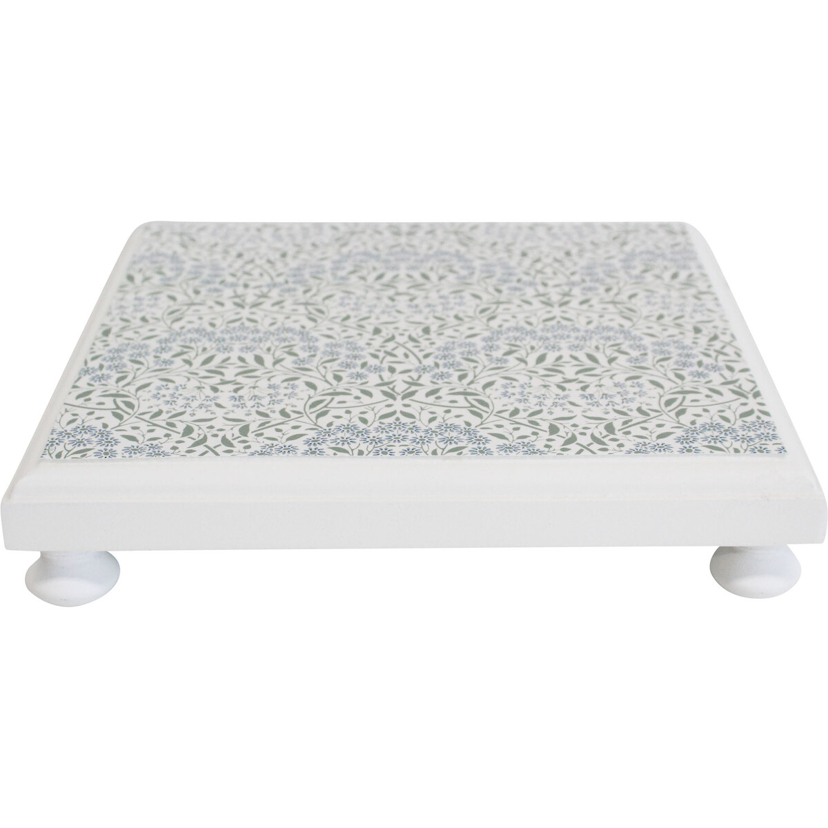 It measures 20.3x20.3x2.5cm, with a light footed design, crafted from wood, and sits comfortably with nearly any interior style - modern minimalists or classic country styles will both like the floral motif and white painted finish. And because it’s hand-finished using natural materials, each piece feels unique - but they still look gorgeous displayed together on shelving or in themed kitchen gift displays.