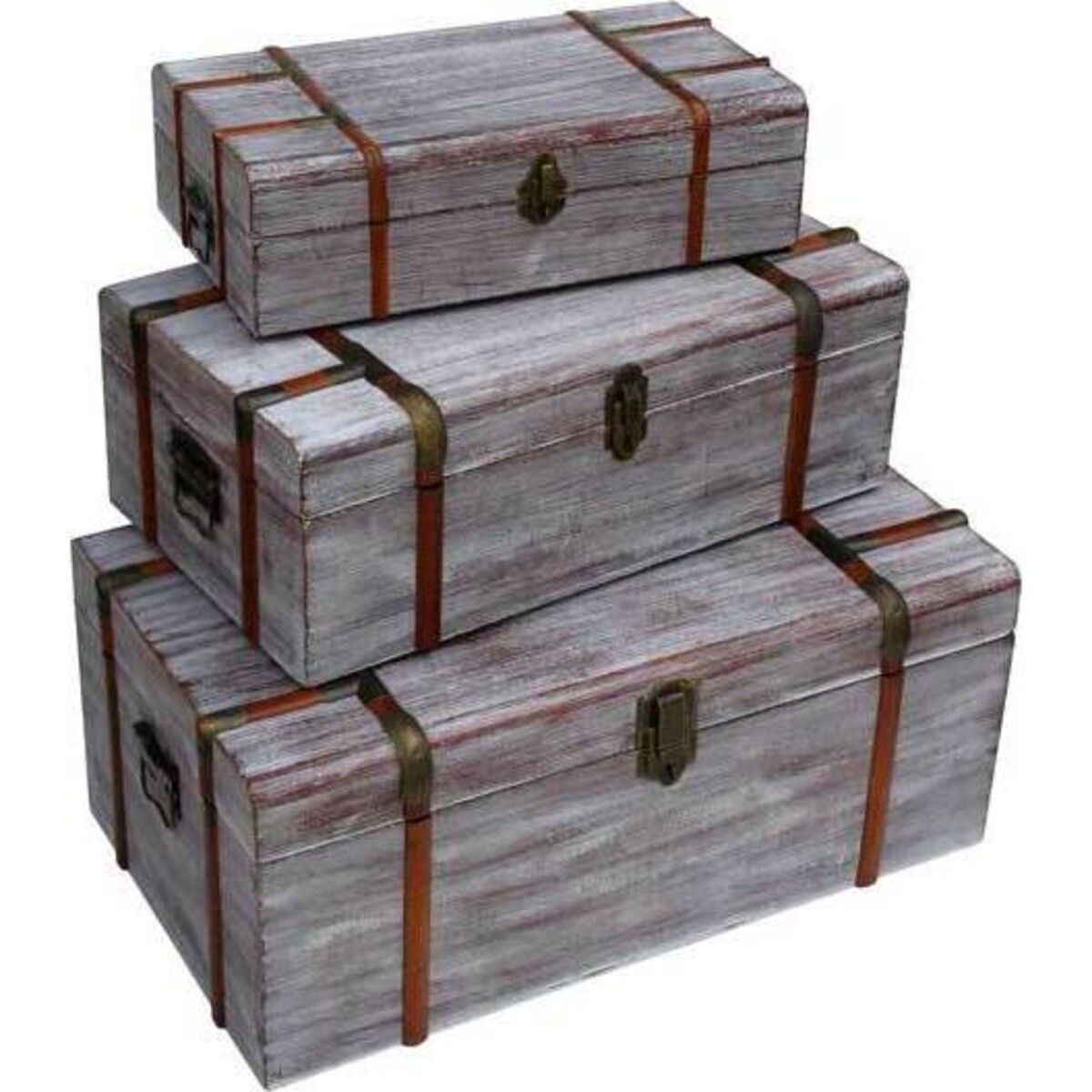 These ornate antique trunks are available in 3 different sizes- large medium and small. The large size measures 72x42x31 cm, medium size measures 61x25x21 cm and the small size measures 49x27x15 cm.