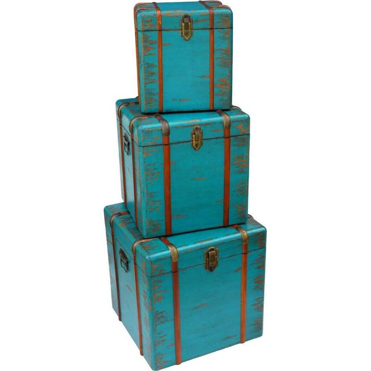 These trunks come in 3 different sizes. The large one is50x50x50 cm, the medium one is 44x42x42 cm and the small one is 33x33x35 cm. The sizes are particularly designed for maximum storage and ease of movement too. They are ideal for storing goods. Since they are available in sets of 3, goods of different sizes can be stored in different boxes according to needs and size. They look regal and have intricate designing on them. Because of this they do not need to be put in stores or closets, but can also be kept out in the room. The price of these trunks is quite affordable and reasonable.