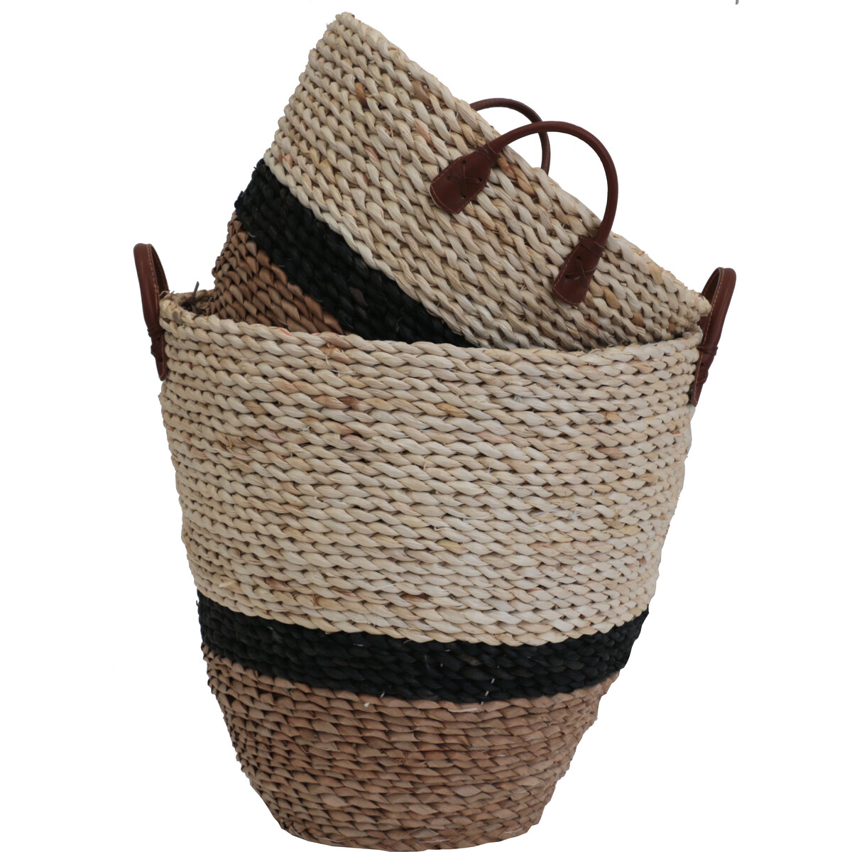 Homes are filled with spaces that constantly need great organizers. The children's room with the endless numbers of toys, the laundry area for its washed and unwashed piles or the kitchen where the vegetables need sorting - and baskets can be such a boon. This set of gorgeous handmade woven seagrass ones are simply wonderful in terms of their vivid colours and patterns, and the sturdy yet pliable structure they have makes them lightweight and easy to handle. The seagrass of course makes them possess a certain organic look, while the colour patterns are decidedly very chic. Could be used at the back of cars to hold your grocery shopping, or work as great as picnic baskets. The larger of the two is 40 cm in height and the smaller being 30 cm in height. The PU leather handles makes the tub like structure easy to carry and move. The delightful colour usage in fact adds a certain display worthiness to them, so use them if you please near the fireplace to hold your blankets or in the children's room to hold their toys and make them as much a part of the décor. The sizes is such that or can nest one inside the other when not in use.