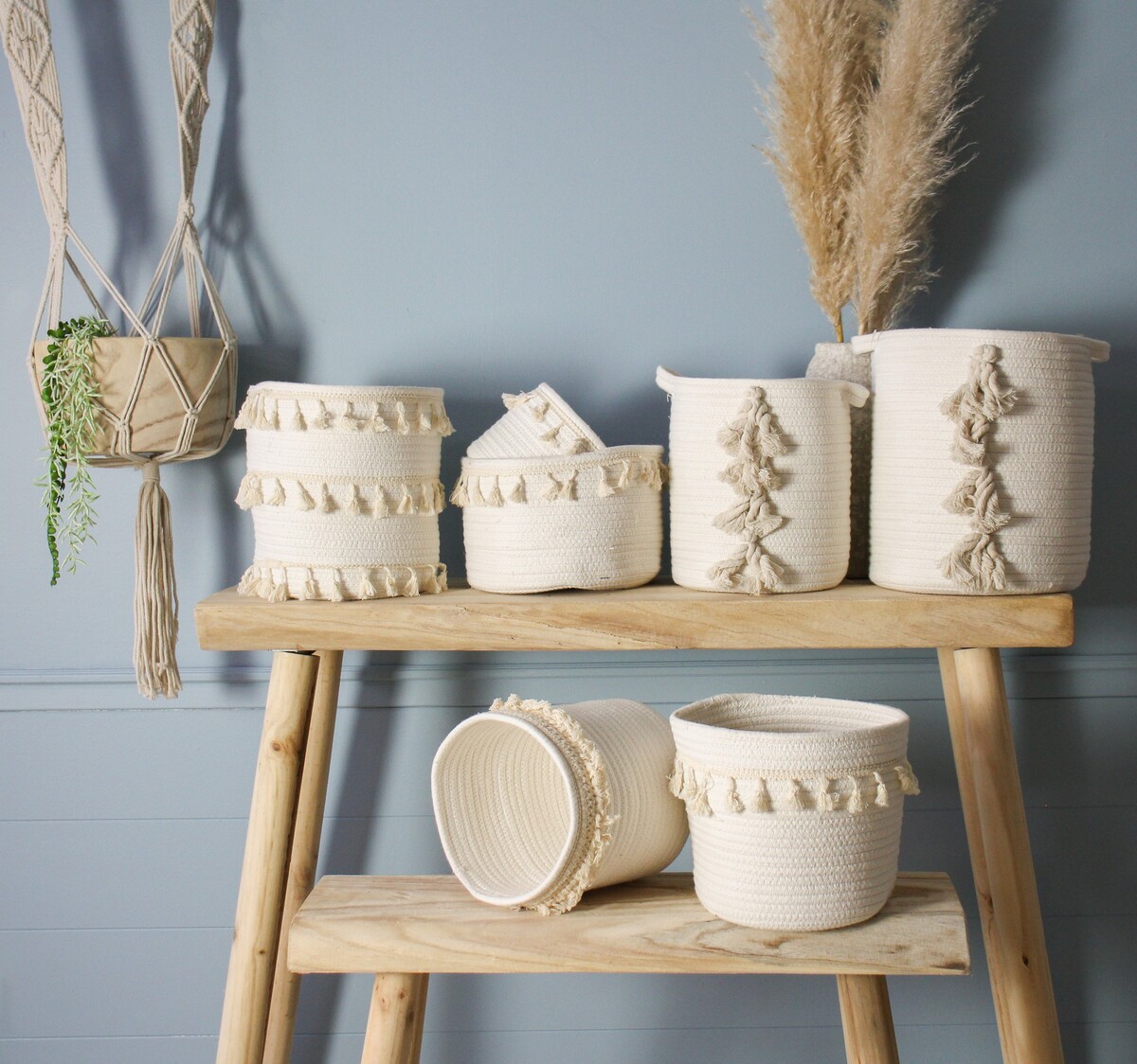 Recommended for use in interior spatial setting alone, this Tub/ Planter Izzy S/2 will actually brighten up the overall decorative atmosphere of interior spaces as it is crafted in a brightly coloured palette of white. Both tubs are intricately woven using high quality cotton material. The larger of the two planter tubs is crafted in a horizontally inclined dimension which measures 25 centimetres in length, 25 centimetres in width and 15 centimetres in height. The Smaller sized planter on the other hand measures just 20 centimetres in length, 20 centimetres in width and 12 centimetres in height.