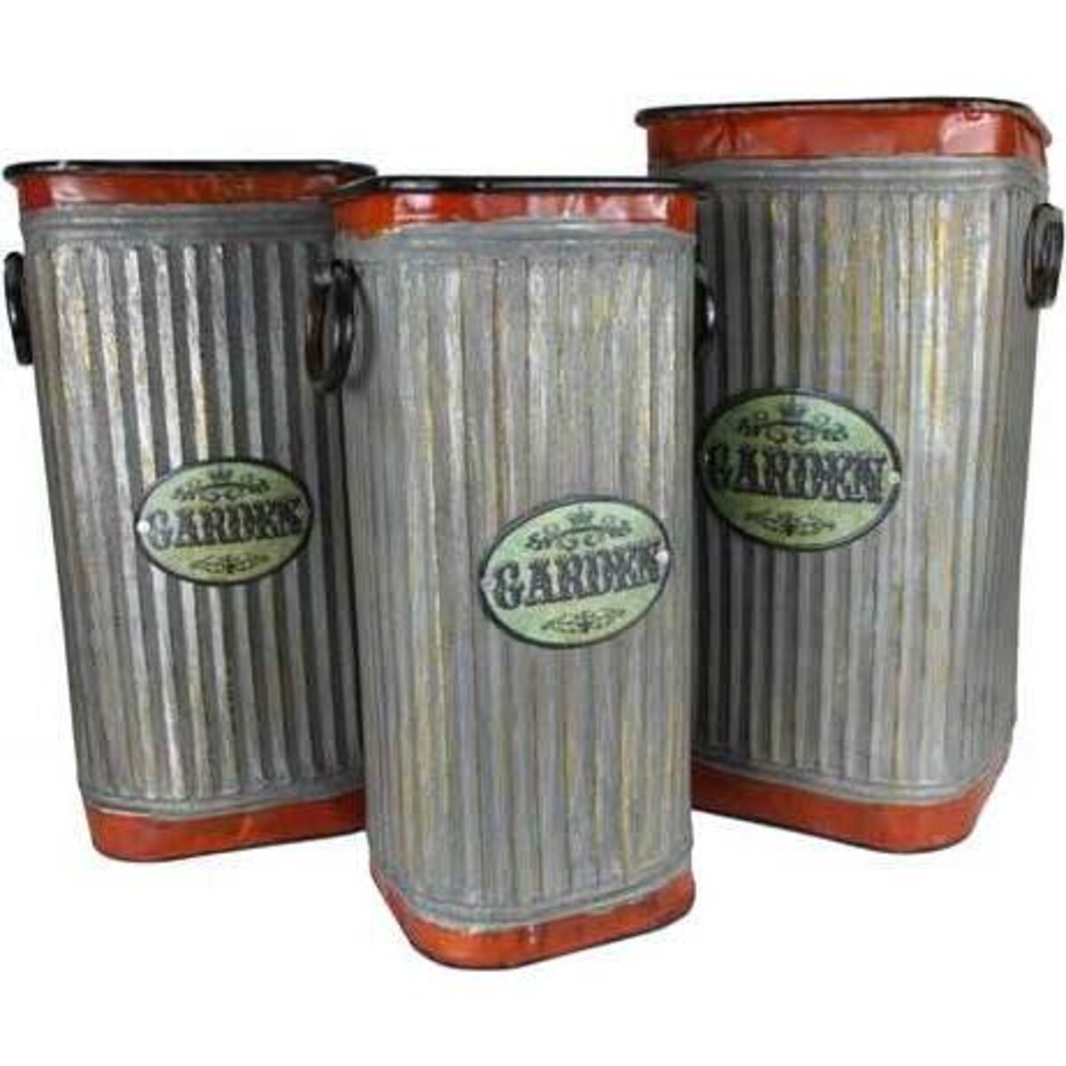 The ridged metal body and the rust coloured rim of the tubs look positively charming in the garden setting. The three tubs come in convenient sizes that can be used for taller plants as well as smaller ones with ease. There are large round handles on the sides that will make shifting of the tubs quite convenient. The metal is sturdy and will resist rusting. The three levels at which the tubs can be kept will make the setting more attractive. The ridged body, the metal plate on the front which says in an ornate font - Garden - is all in keeping with the shabby chic style of doing the interiors. When the party moves outdoors these tubs could be used as special display planters along with the barn and country look decor for maximum effect. The tallest is at the height 46 cm while the shortest of the three is around 40 cm thus making it perfect for a tiered setting.