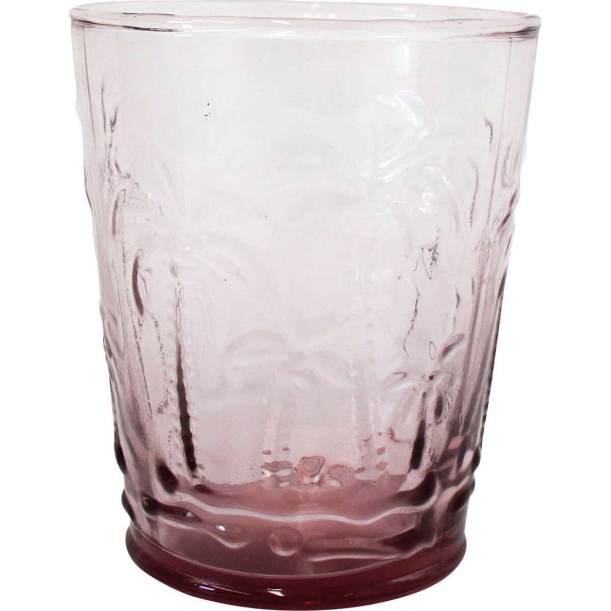 A summer nostalgic accent, use a piece that brings the beach indoors. This rock glass has a flat bottom with no handle, but it possesses a palm embossed pattern that enhances steady hold and handling. Use this piece to keep a party vibrant and breathe new life into other aesthetics used. Tumbler Glass Palm Pink is tropically inspired by a mix of vintage and classic accent. The rim of the tumbler is void of design to provide less distraction for drinkers. The thin rim also aids the smooth flow of liquid into one's mouth. This glassware is an elegant accessory to one's bar collection.