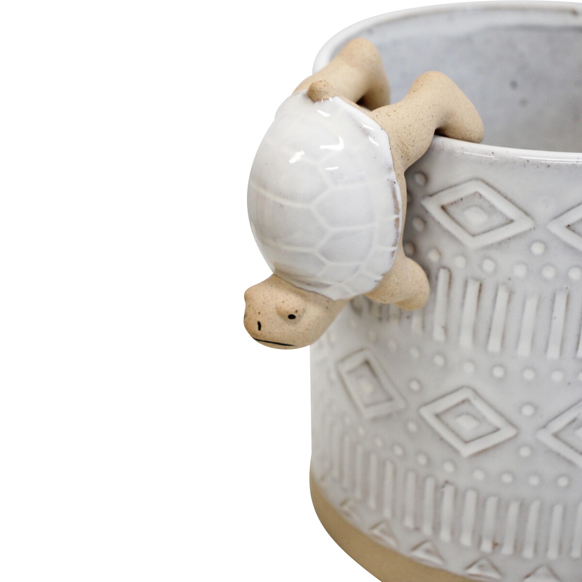 The Turtle Climber White is a d?©cor enriching ornamental piece with a clever design inspired by the incredible feats of sea turtles. Did you know that turtles always go back to the beach they were born on in order to birth their own offspring too? That is incredible just as this ceramic moulding is incredibly adorable. It features a turtle moulded with a sandy-brown colour and look while it has a shiny, white shell on its back. It is perfect for decorating living room tables, dining room tables, fridge tops, shelf tops and even office tables.
