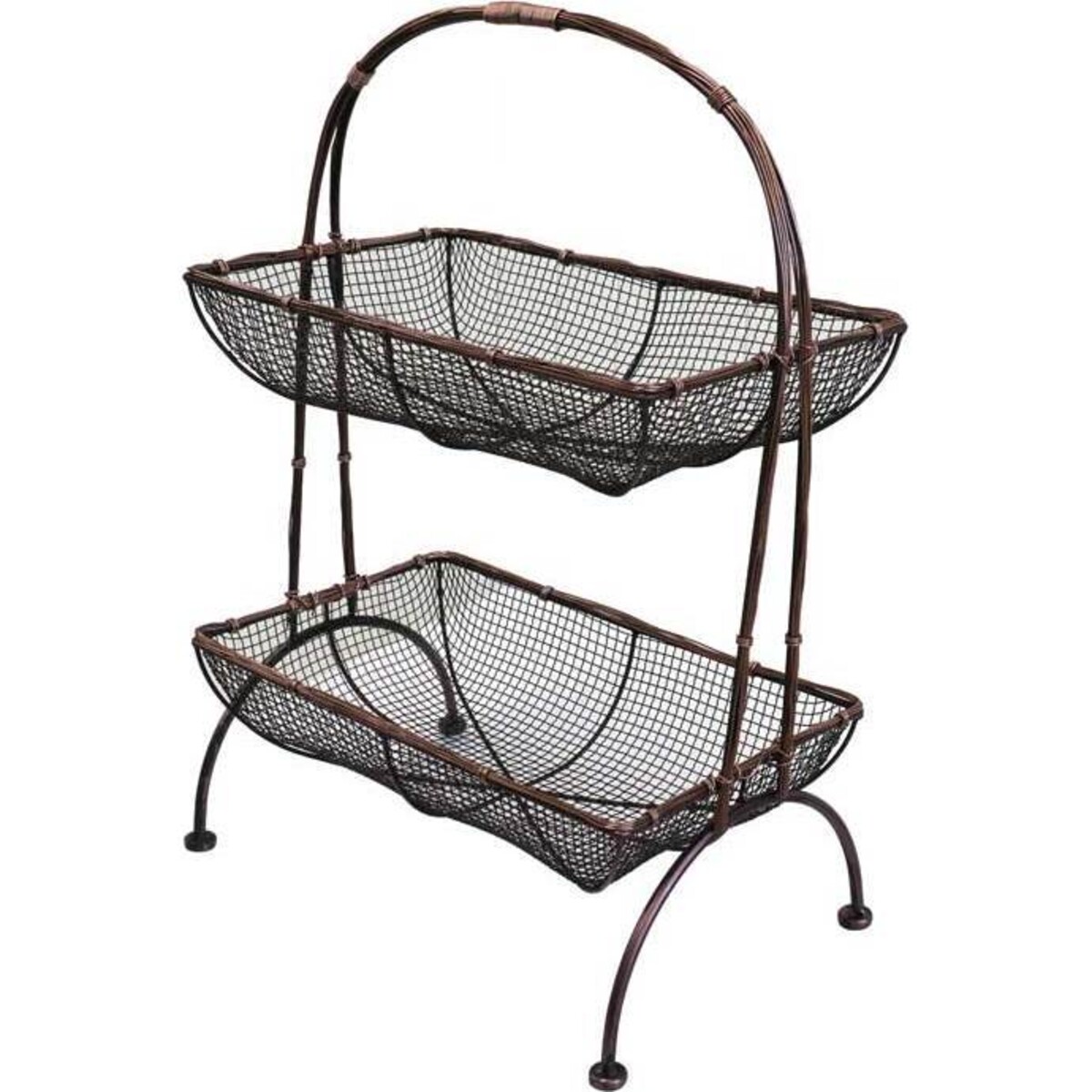 Crafted entirely from metal makes it very strong and durable. The two baskets have adequate space between them and the stand on which the two baskets reside is also well balanced and well equipped to make itself withstand much weight. The two baskets are elongated and come with deep enough troughs which should hold a lot of things, be it fresh vegetables, kids' books and toys or your make up and accessories. The frame has four legs that curve gracefully as does the top handle. The organizer would fit into smaller space also and in fact create levels of spaces for things that do not fit elsewhere-like fruits and vegetables, or things that your dresser can't hold-your makeup and other accessories. Such organizers because of their very utilitarian looks can fit in anywhere. The metal while being tough is not too heavy and the stand could be shifted to any place where it is needed. While entertaining guests you may wish to use it to serve breads also! Truly versatile-the size too allows so many ways of exploring new ways of using it!