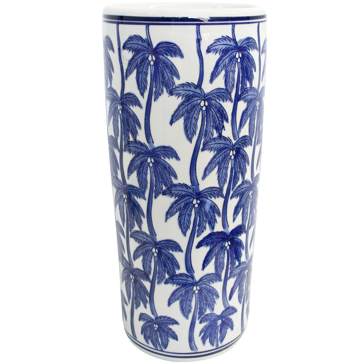 The #Umbrella Holder Barbados is made is a fairly big size which has a dimension which measures 19 centimetres in length, 19 centimetres in width and 44 centimetres in height. The interior of this umbrella holder is glazed in a smooth, pristine white and glossy visual appeal while the exterior showcases a beautiful depiction of majestic, exotic coconut bearing palm trees in navy blue colour. Apart from the motif of the palm tree, the combination of immaculate white and navy blue hues is what makes this porcelain umbrella holder quite distinctive!