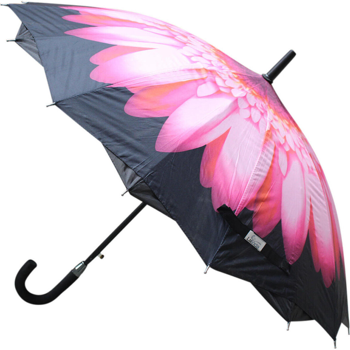 The sturdy metal body is topped with a colourful polyester canopy-after all, an umbrella this special looking, you will surely wish for a rainy day so as to open its gorgeous looking flower adorned top. The hook shaped handle is easy to hold and will be slip free even with wet fingers. Th dark coloured background throws into relief the beauty f the pink flower whose presence makes the entire canopy come alive in burst of exotic colours. The sturdy metal frame work ensures that even on the windiest of days the umbrella steadfastly keeps it shape. Will fold easily and its opening action is swift and smooth. Lightweight material usage adds to its easy carrying. Will add style and a touch of beauty to your everyday, come rain, come too much sunshine.