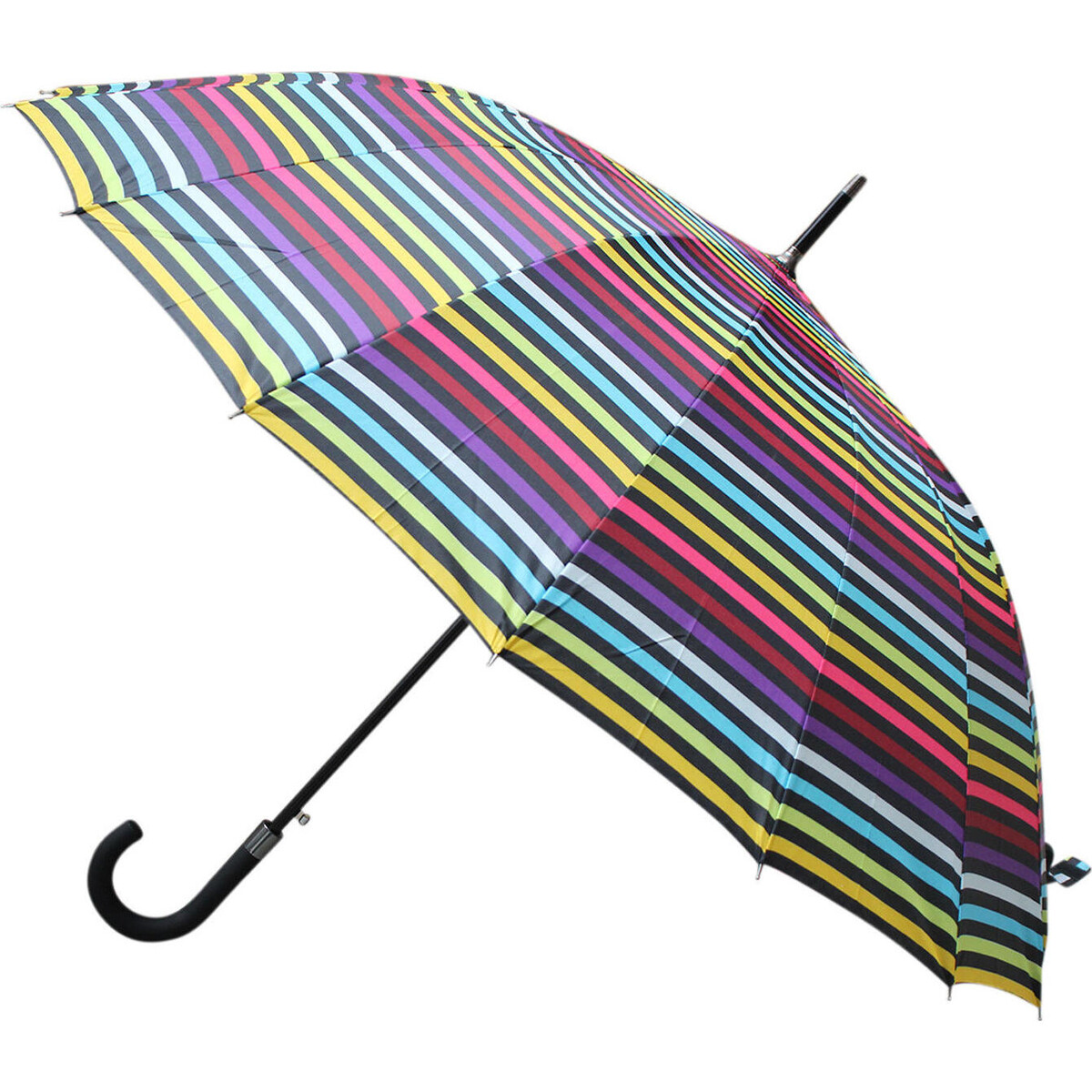 When windy turns to gale speed winds and showers turn to pelting rain, your trusty of umbrella is what you need to count on. Here is one that has been created keeping in mind that bad weather days are often dull, and infusing the day with some colour would be great means to make a difference to its cheery feel. The canopy is created from high density polyester that will break the winds and take the height of the pouring rain and yet not change its shape or feel too heavy even of you out on along walk by the beach. The 1-3 cm diameter canopy is sumptuously large to give cover to even two individuals and while carrying too. You will not feel the weight of its metal body and metal made inner structure. The colours on the canopy will continue to look bright and new despite much usage and the umbrella will not just open in a smooth action, but will when held from the curved handle will remain slip free.