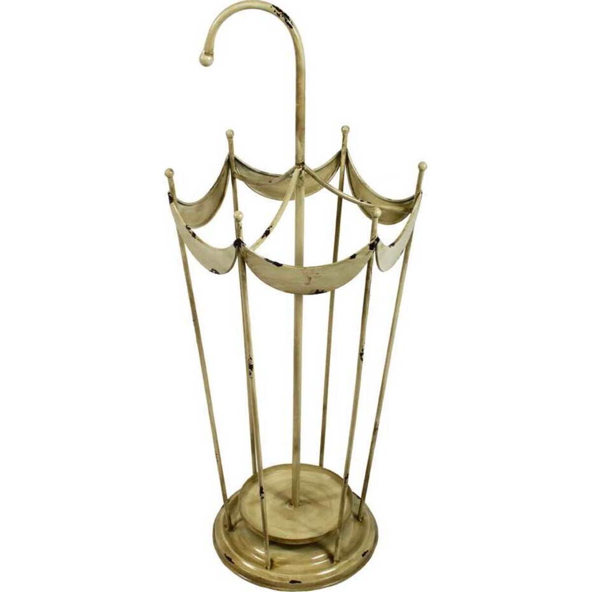 The umbrella stand does not need two guesses when it comes to how it depicts its usage with its design. Crafted from metal, it has peeling paint in places, is in a soft cream colour and has a design that is truly well created by master designers at Lavida who know the technique of metal craft. The stand is about 79 cm tall and has this hooked handle so typical of fit-in-the crook kind of umbrella. The metal prongs are also the same as any umbrella and that is what creates the frame of the stand. The base is round and the stand gets its stability from this. The tapering shape of the stand makes it look o unique and it also creates juts the right amount of space for at least four umbrellas that may be hung from the top of the divider that is there to create four distinct compartments. A great way to bring in shabby chic and yet get the best possible utility as well.