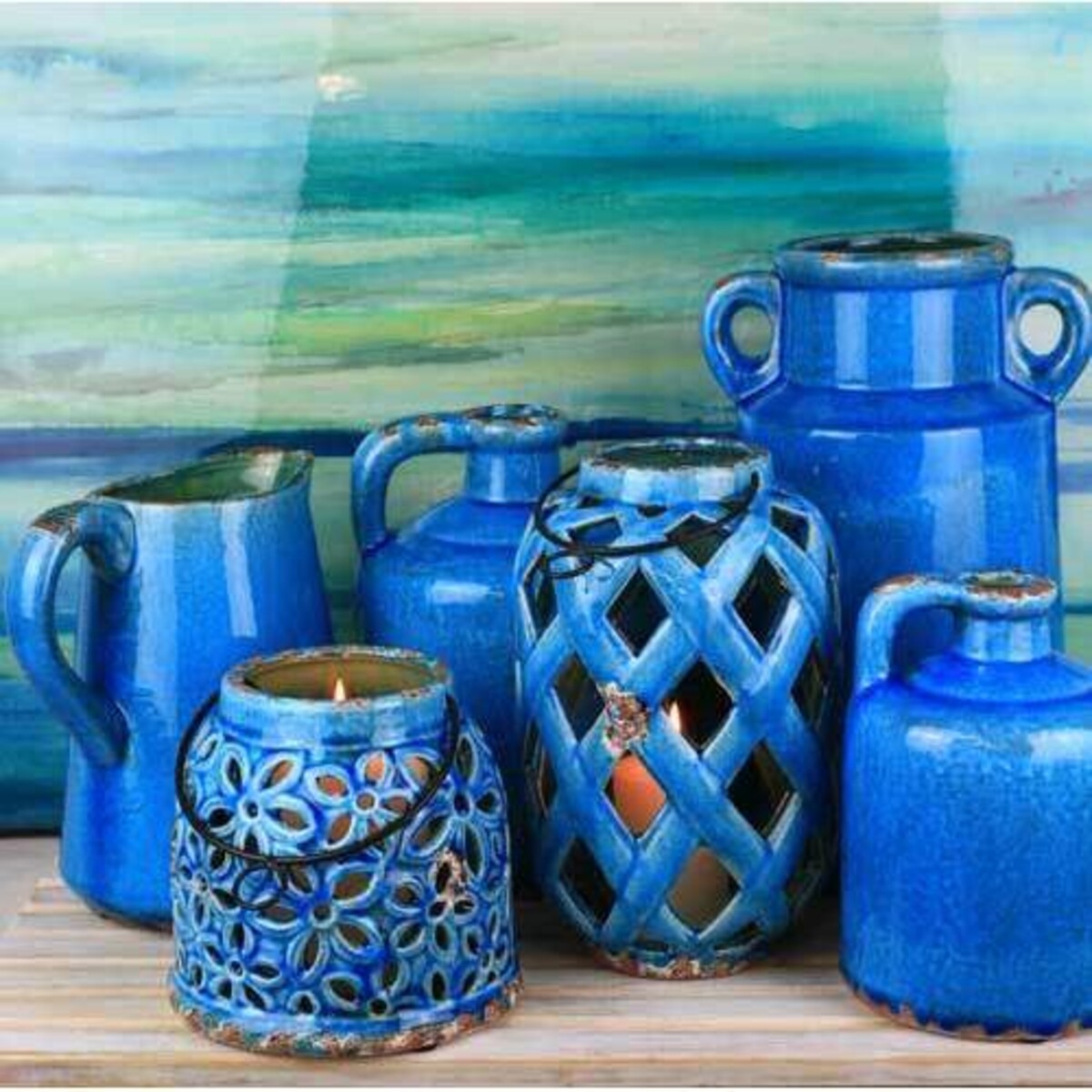 Lavida has from time to time tried to revive the beauty of genuine handcrafted ceramic work and the best way to keep that going is in finding the latest finds and the Trullo range with its brilliant blue serve ware, jugs and urns are seen to be believed for their colour effect and their gorgeous but simple styling. This urn stands almost a feet high and can be made part of a setting that has greens and maybe some more lanterns, candles and the rustic sort of layout. The urn trullo has the kind of size and structure that will bound to be noticed for so many reasons. The very nature of the tiny handles, the wide mouth and the study round base on which its stands, makes it look all the more special. There is such fun in experimenting with farm and country fee decor items such as this and great ideas are never far away.