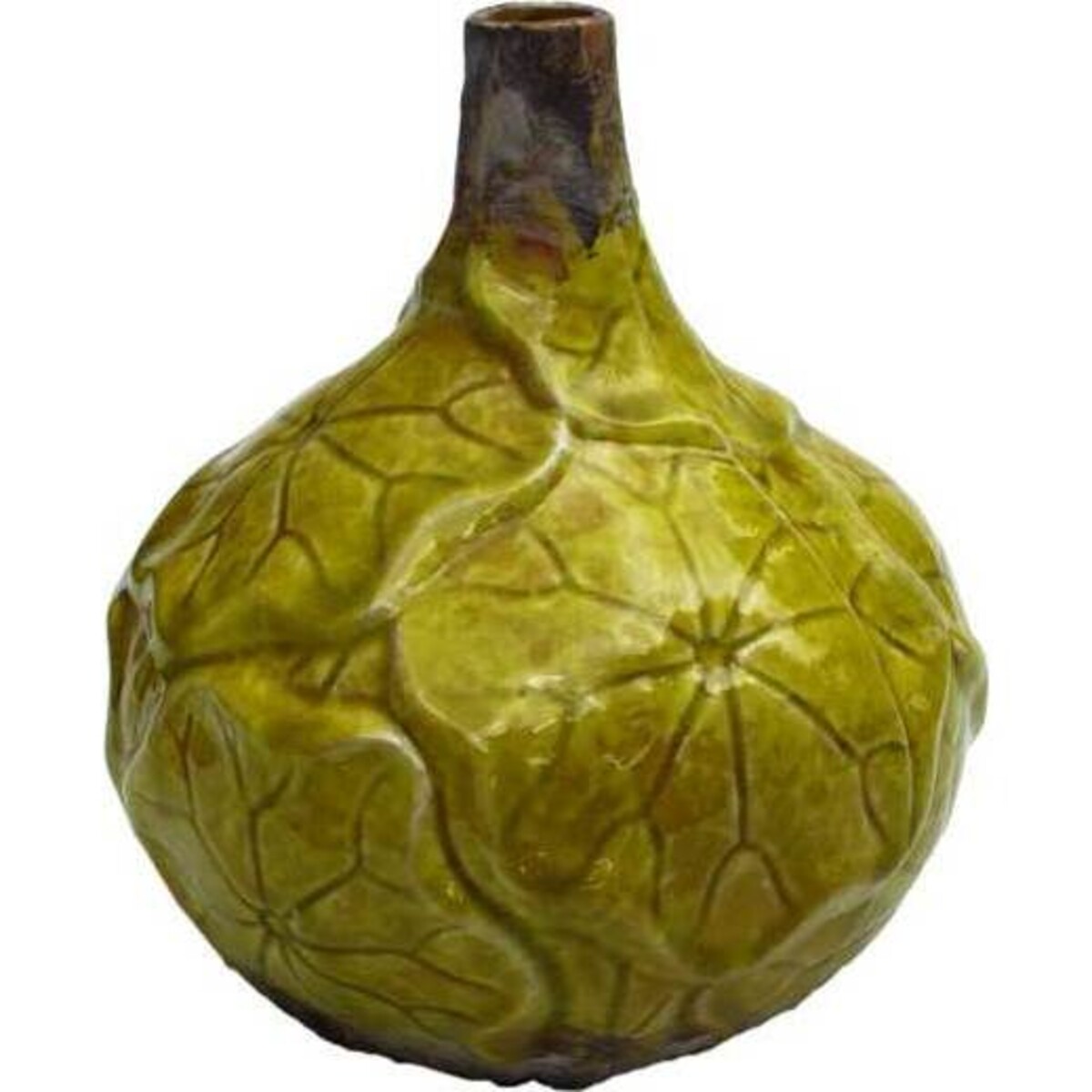Introducing the Lotus Leaf Round Vase, your solution for finding a vase that's far from standard. With its large round body, vibrant green colour and lotus leaf textured design, it would fit perfectly into your home whether you place it on the floor as a decorative accent or place flowers in it and put it on a table. Considering its exquisite appearance, you'll have everyone's mouths dropping open at the mere sight of it. Don't be surprised if they ask where they can get one of their own.