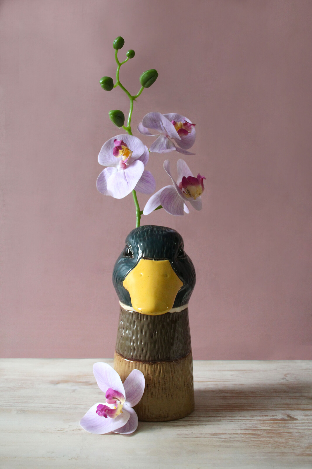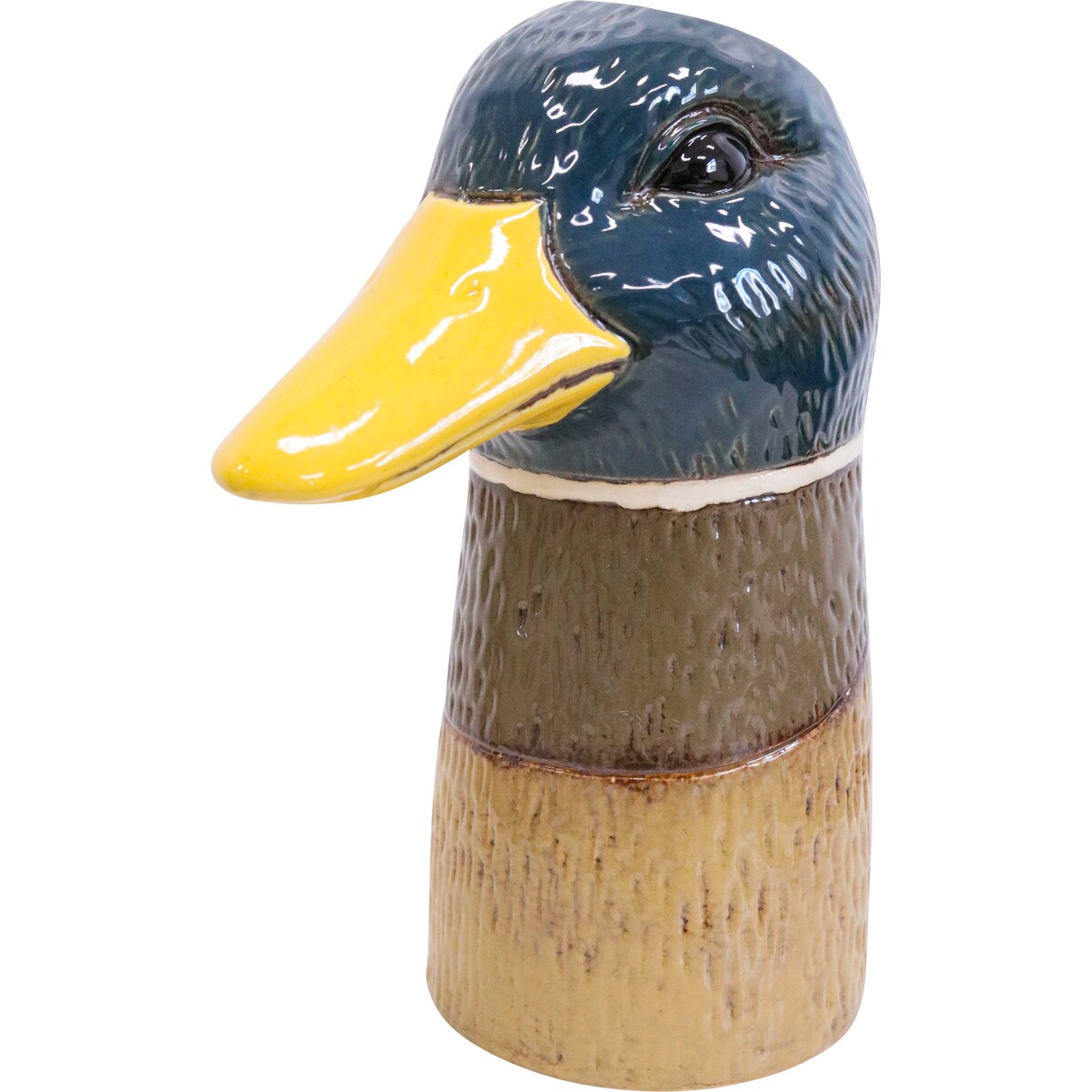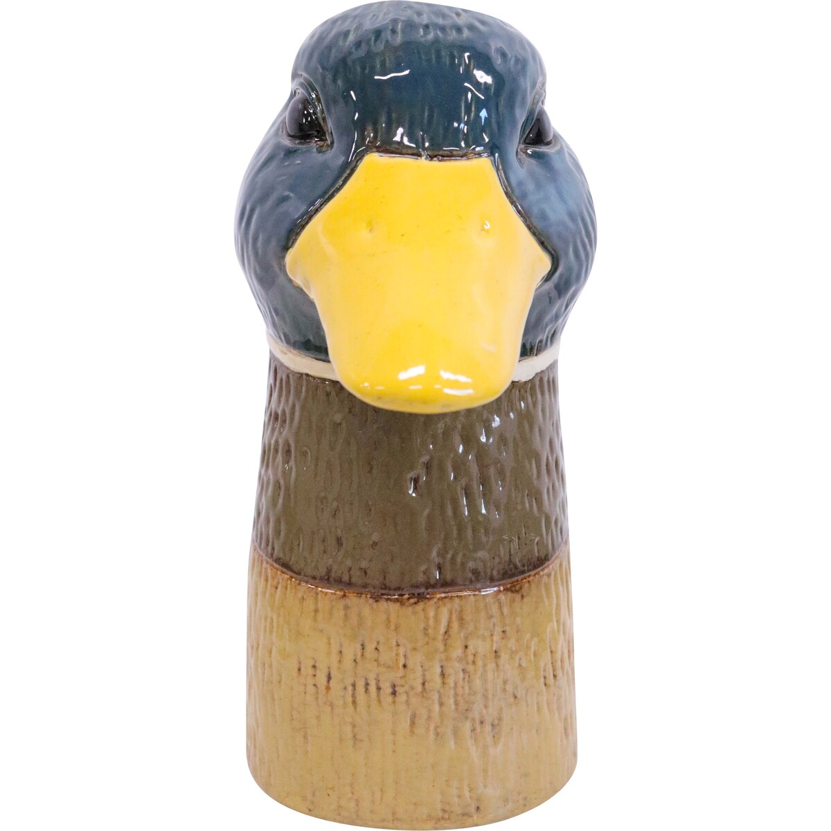 We love that anything with a bit of character draws customers in these days. And this Planter/Vase Mallard is no exception - what a beauty. It's the kind of décor piece that could pull together a rustic living room, add some cheeky fun to a kitchen, or even jazz up an office bookshelf. Not saying it's everyone's cuppa tea - but it's quite striking, and there's no denying it's got personality. We really appreciate how the vibrant yellow bill and rich blue head pop against earthy tones on the neck. The hand-finishing on these means there's always a hint of variation in the glaze. It's natural for them to look slightly different – and we like that.