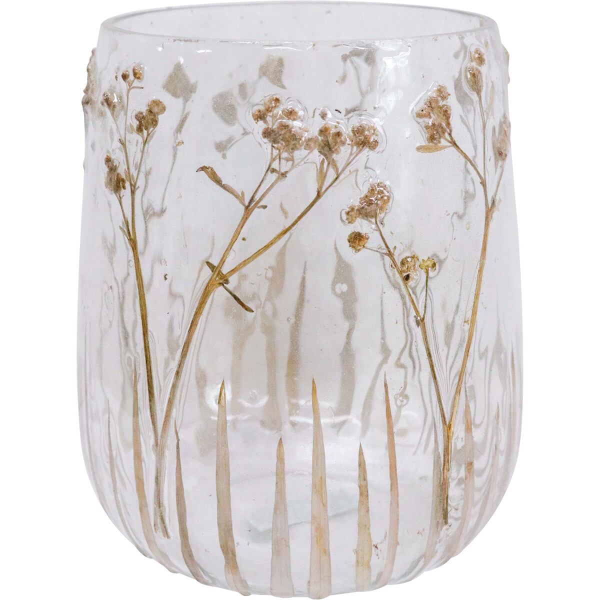 Introducing the Vase Organic, a truly captivating addition to your homewares and giftware collection. This 15x15x18 cm masterpiece, meticulously handcrafted from premium glass, exudes an aura of elegance and sophistication. Featuring a clear design, it beautifully showcases delicate, pressed botanical elements, making each vase a unique work of art. The inherent variations in finish are a testament to its artisanal craftsmanship and add to its charm and individuality.