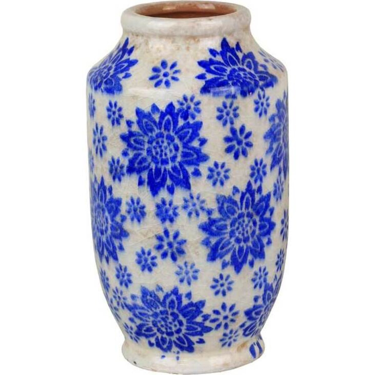 Lavida has over a long period of time creating ranges in a variety of material including ceramic keeping in mind the needs of modern homes that feel that over ornamentation need not be the way to do decors and so the need to being in more shabby chic and simple lines and designs and this vase is one such offering. It lovely star shaped flowers in blue on the background of crackled off white polished ceramic loos simply brilliant. The shape of the vase is the kind that has a wide mouth and so the possibility of sticking in quite a number of blooms would be possible. The vase has a height of 22 cm and the maximum diameter s 12 cm. Will make an excellent centrepiece with flowers in t or simply work as a standalone display as well. The floral pattern is overlapping, smaller and larger flowers converging in happy milieu and the ceramic marble like background making them so much more attractive . A great way to enhance the look of your home this holiday season.