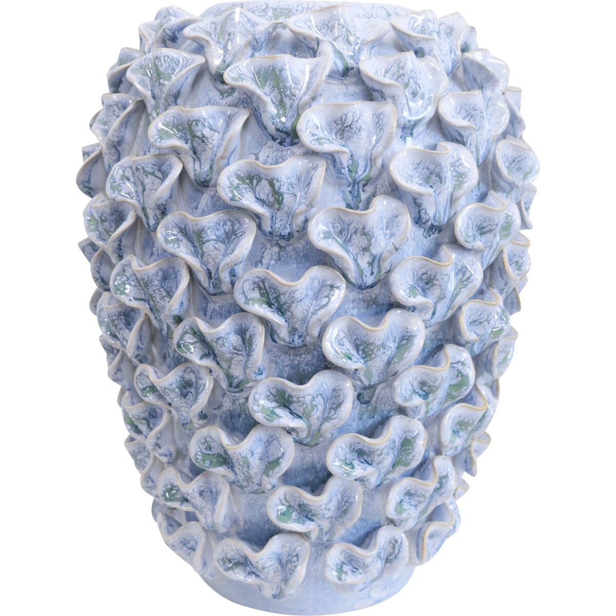 That’s the thing about this vase - it’s definitely a statement piece. It was one of those items that caught our eye from the start. The texture, the hand-feel, and then all those raised succulent-style petals - there’s really not much like it out there. Each vase is really a work of art on its own. Hand-finished and glazed in that soft, rich blue with hints of green and purple tones swirling around the individual petals, it almost looks alive. Ceramic pieces like this 22x22x30cm beauty tick all sorts of boxes for homewares and gift shops. It can go on a reception desk, in a hotel foyer, or be used to pull together an entire living room display - it doesn’t matter what the colour palette is. Plus, the reactive glaze means every single one is different - every vase your customers pick up will have subtle shifts in tone and pattern. That’s half the fun. And it means there’ll always be another piece that looks and feels distinct. It might sound strange but we do get a bit excited when we see these come through our warehouse doors, because we know they’re going to look fabulous for a long time wherever they go.