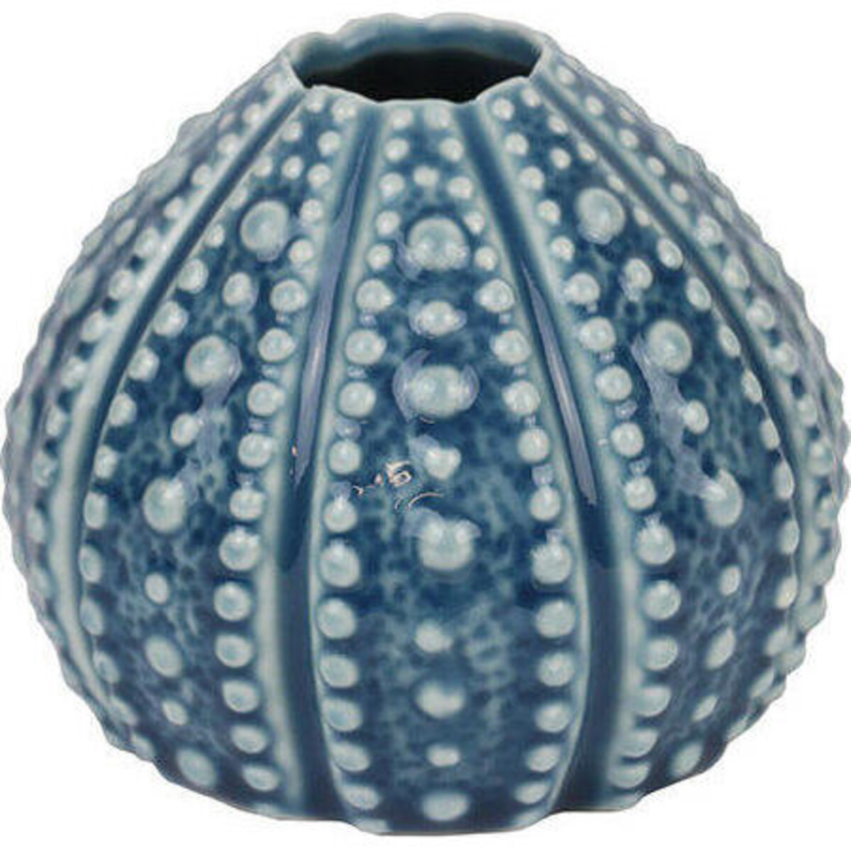 The spiky surface says it all. One of the most delicate of creatures in the seas, the sea urchin has been gifted by nature a skin and texture to ward off any attack and making the most of this natural design is this coast inspired piece from Lavida. The blue is refreshingly oceanic, the roundness of the vase and its spikiness, pretty much like one would see on a sea urchin and the shape and size, the kind that could be used with ease. Make a difference to the way your coastal look home begins to feel with this small little inclusion. Could be placed on mantles or bedside table or a corner that you wish to dedicate t the coastal theme. After all, the marine life we come across makes the sea dn its thematic as interesting as it can be. The high glaze ceramic vase is quite dainty in terms of size-a mere 8 cm in its height is all of 10 c in width with the base flat and broad. The moth s tiny which makes it all the more unique. Beautifully textured and versatile in the manner that it could be used.