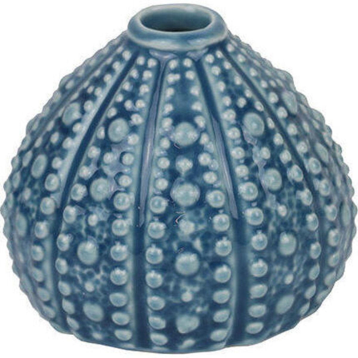 It is not just the blue colour but the textured finish of glazed ceramic that catches your eye instantly. Made with the idea to replicate the sea urchin and its most interesting feature-its outer skin. Made of barnacle like shells formations, ribbed and rugged, and nothing like you would have ever seen. This is a clear reason why Lavida is perhaps the finest source for your marine and ocean inspired home, as they truly do go down to the depths. Though small with a bare height of a few cms, this vase will pair up beautifully with the other vases in the same category and make quite a lovely accent. Could be used as such like a regular vase or as a standalone accent in any space and its sure to begin several conversations. The gracefully curved body of the ceramic vase has a small little mouth in which you could place regular flowers or use shells on stalks as an accompaniment. The flat broad base, ribbing across from top to the base and the bubbles that add a texture to its exterior are features sure to thrill you.