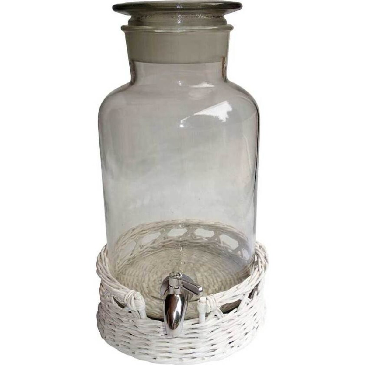 This dispenser consists of clear glass that's shaded black toward the top, has a flat top lid and a metallic spout at the bottom. While it's fabulous enough on its own, it sits in a white wicker basket so it can easily stay in place without sliding. Of course it would look lovely in the fridge, but it can easily be transported to the table to deliver refreshments to guests. Everyone is sure to love its style and its ease of use.