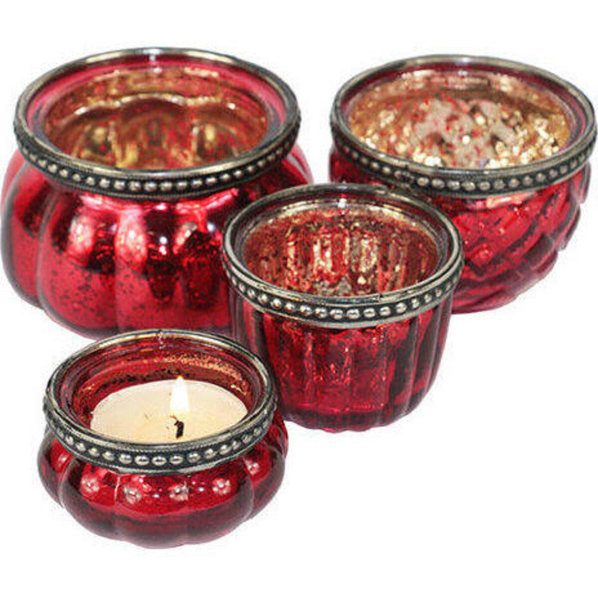 The touch of the right kind of illumination is most important for taking the decor to quite another level of beauty - here is one of those inclusions whose very presence even when not lit will give a gorgeous vintage appeal to your décor and in the evenings, make a mesmerizing lighting impact. Made of toughened glass, this votive has a gorgeous shimmering red colour that glows joyfully when lit up within. The scalloped body, softly rounded and its smoothness gets highlighted when the tealight is lit and takes the appearance of the space to quite another level. Could be paired with several of your décor articles or a centrepiece. Could be clustered and made into something superior in terms of a presentation extraordinary - after all this is a kind of mood lighting that makes even the simplest of displays look extravagant and decoratively rich. The touch of silver on the rim and the mercury glass adds a touch of metallic signage to its look that is most appealing.
