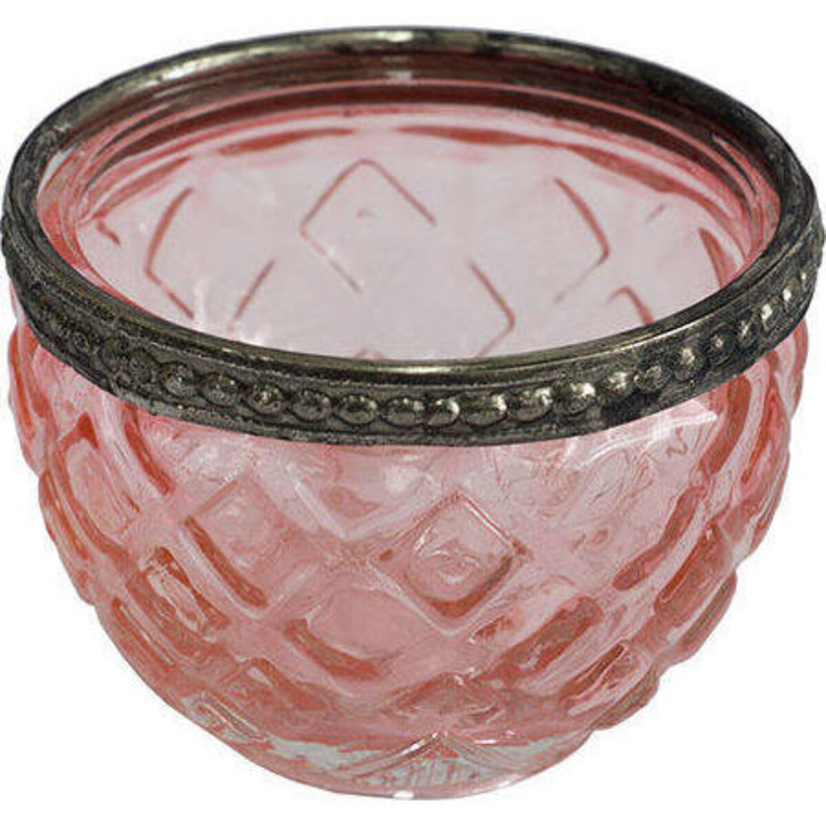 It is tiny but packs in a punch when it comes to the manner in which it adds beauty to the space where it is placed. After all it is in the play of light and shadows that spotlight can be thrown where be necessary. In the case of votives they have muted kind of light that hides what needs to be and showcases the beauty with much perfection. This tiny pink coloured glass votive gains its prominence with the help of the tealight whose radiance will makes the space light up in a mellow soft light. Perfect for the dining table, or the coffee table where you wish to sit down for a cosy meal or a drink. Ambience is after all less about décor pieces and amore to do with the mood and appeal to the senses that can be created with visual or other sensory ways. Barely 5 cm high, the rose - coloured glass votive has a gorgeous cut glass like pattern creating facets of light. The maximum diameter is at 7 cm which is on the top.