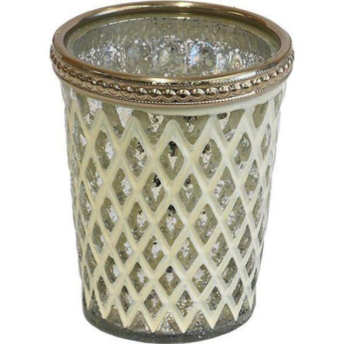 Ambient lighting is a great means to make attractive what sometimes we consider prosaic ad very boring. Here is a lovely respite from the ordinary when electric lighting is what you wish to change to something more subtle, warm and inviting. Use this tall votive with a height of 7 cm and a tumbler like shape with narrower broader and wider mouth. The slivery sheen on the inside gets complimented by a pattern on its body that further gets highlighted when the candle is lit inside. The capacity to hold a normal tapering candle, to a pillar candle is there of course and if you wish to keep it really low intensity, one could use tea lights as well. Easy to clean the interiors as the mouth of the votive is adequately wide. This votive would add a stunning; little accent to your corners, main dining table or your coffee table with its rather great Mideastern looks.