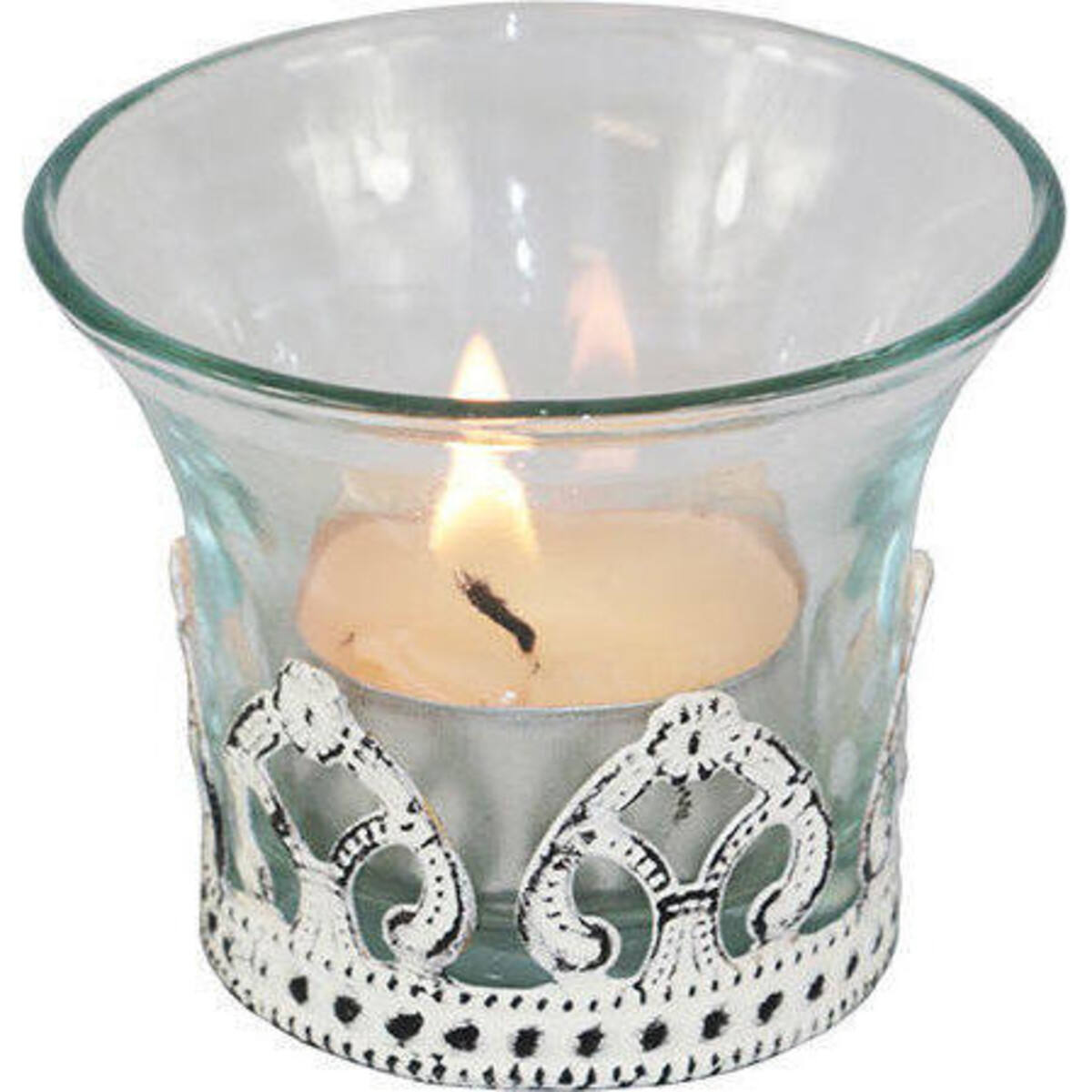 When occasions are not everyday or when you wish to make your home feel and look special, the usage of lighting plays an important role. The antique look metal ring that plays host to the glass made votive sits within this charmed circle. The fleur de lys pattern clearly visible in the design of the metal lower, the votive truly allows your home to gain the look of vintage in one single stroke. Add it to the coffee table or that corner where you always wanted to bring in a look of interest. The mood lighting will set off the look of all those spaces that have seldom garnered much attention. The mellow light of tiny tea lights possesses this quality that they can hide many a flaw in the surroundings and help bring to notice the beauty of that space. Create that look of festive flair for special occasions with this tiny little inclusion that can be used solo or in clusters for a more dramatic look.