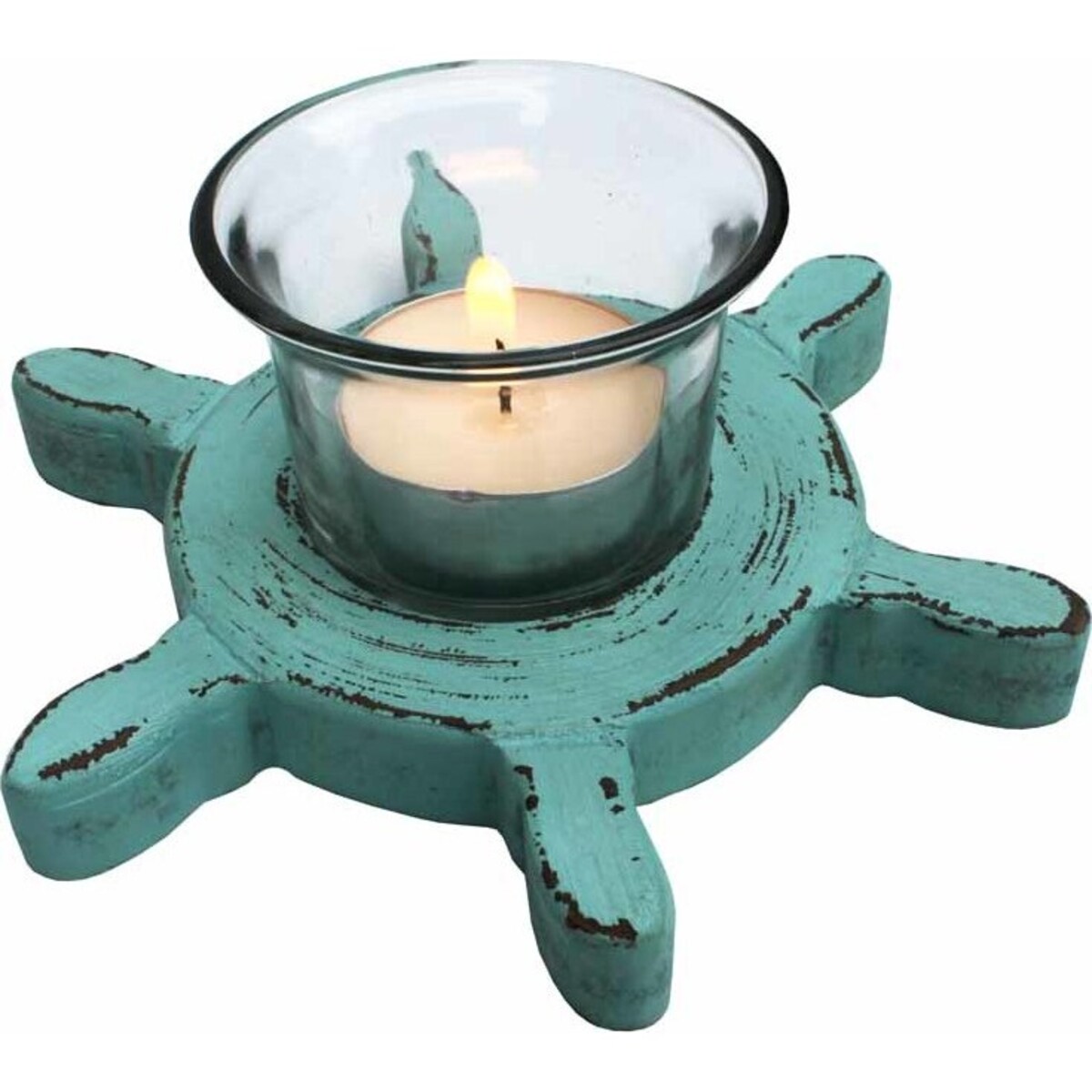As you know, a home setting is not all about the big, sweeping ornaments. The little details and fine ornaments are equally as important?they are the ones your guests notice when the chat has died down to a more intimate level. And for those little touches of homey comfort, this Votive (Helm Aqua - Candle Holders section) can deliver just the right intensity of good vibes. The quaint rugged beauty of the wooden helm?worn to effect?provides a delightful contrast to the glass candle holder, especially when it is lit. It is just a great thing with which to set a table or tables (especially if you're catering to an outdoor garden party).