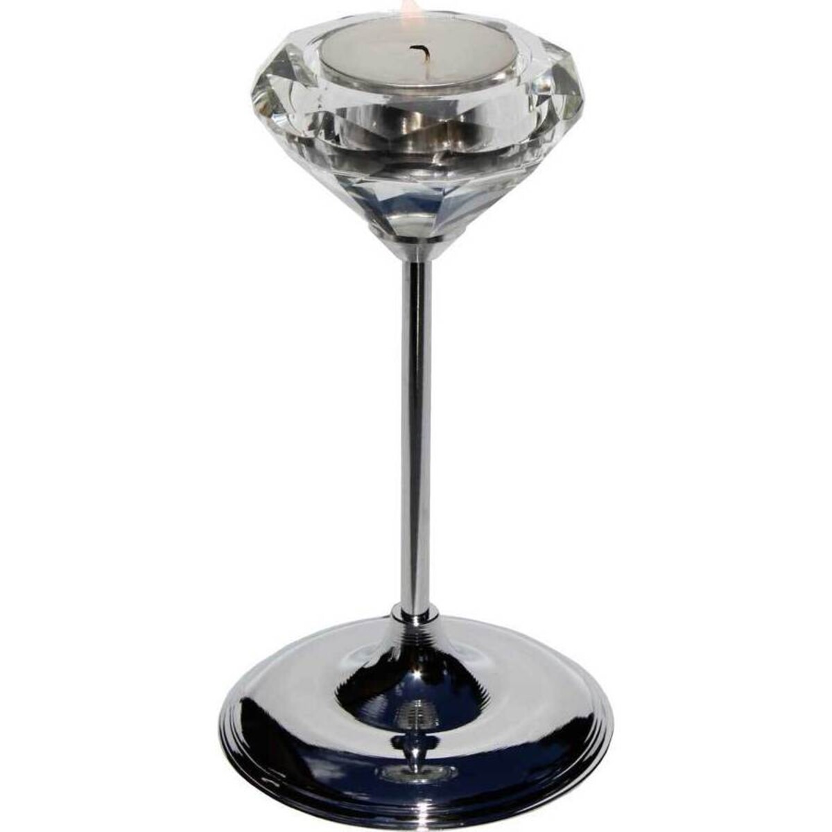 This Tall Diamond Votive Holder is just what you've been looking for. The clear replica diamond sits on a tall stand and in the center of the gem is space for a votive candle. The light will reflect beautifully off the piece and make it your new favourite accent to have in your home. It's certainly a conversation starter and one that you'll love proudly displaying in your space.