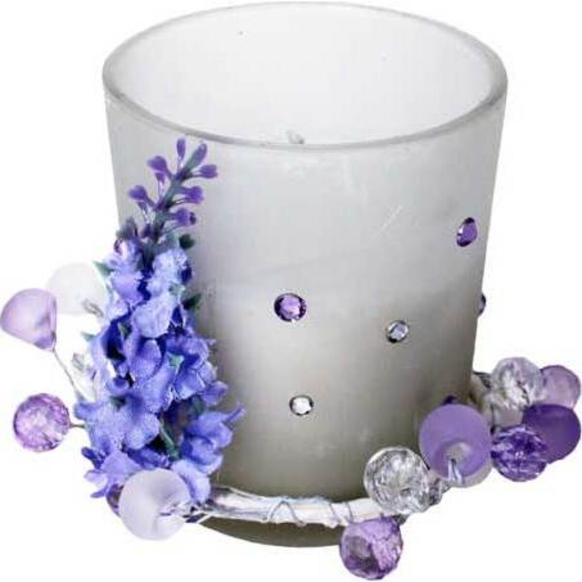 The votive comes in a frosted glass that's accented with purple and clear flat back rhinestones. While that's beautiful enough, at the base is a ring of faux lavender as well as tiny baubles that take the votive's style and design up a notch. While the votives are ideal to use for spring, they're also a way to add some floral beauty to your home year round. You can't help but love the brightness they add to a room.