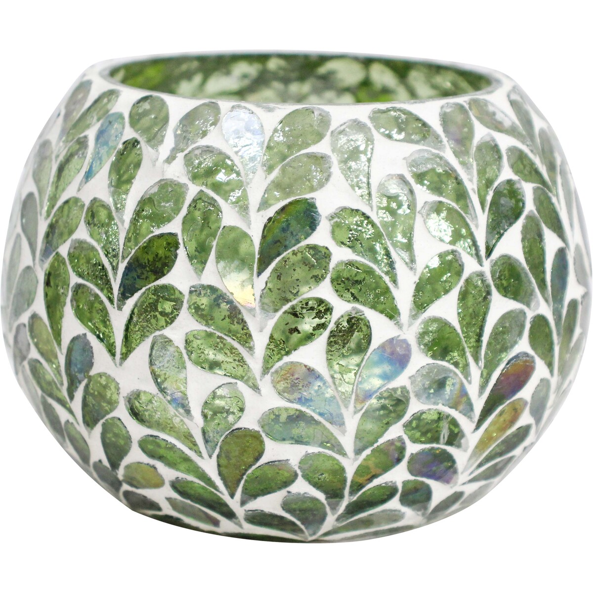The delicate green of the artichoke has been replicated to make this mosaic patterned votive a thing of beauty. The speckled in green and white, glass votive will help make illumination the game changer in your ambient setting. Crafted from fine quality glass , this round shaped votive is a charming in its size which fill on to any small space and help you set it aglow with the light of a tea light.
