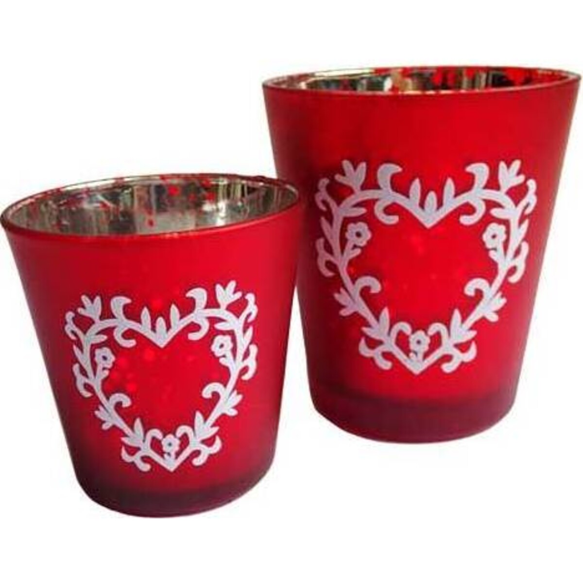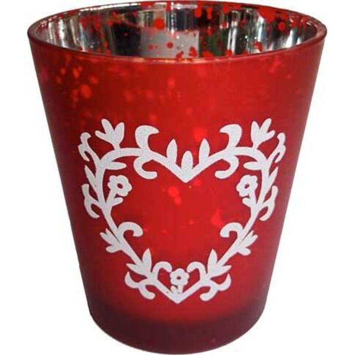 This large Red Leaf Heart Votive is just what you've been searching for. A white floral heart shaped design sits at the front of a bold red votive and while that's lovely enough on its own, the mirrored inside allows for candlelight to reflect beautifully. The best part is that while this decorative accent is large in style, it's not big in size so you can put it in a variety of small areas around your home. You're sure to fall in love with this piece from the moment you lay eyes on it.