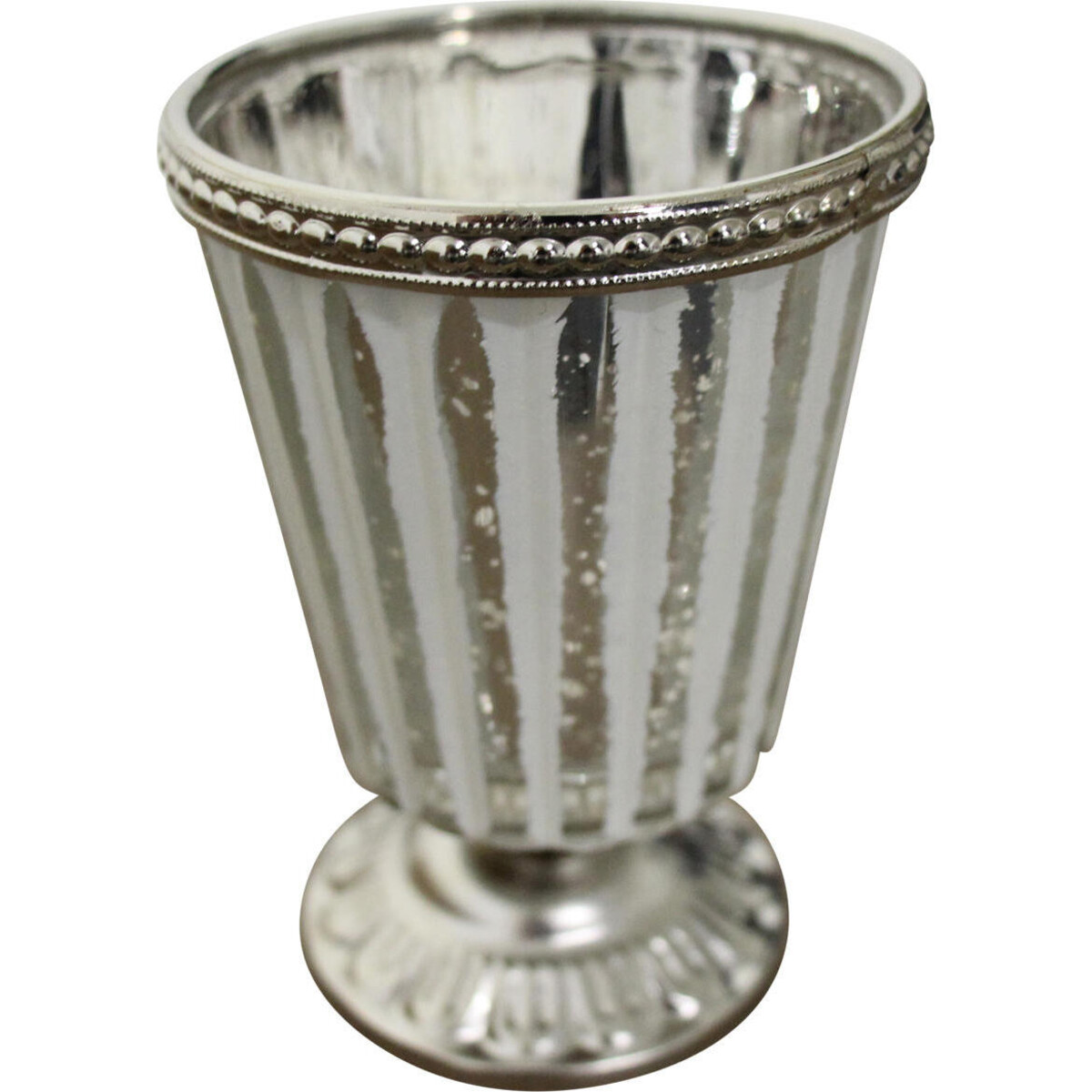 What lights and votive illumination brings with it is a soft kind of lighting perfect for small space sand when the area to be decorated is larger, you could spread them around to layer the look. This glass made ribbed candle holder is sturdy in its glass avatar, comes with white paint markings all over and its rim and base come with silvery highlights to make it ornate feel come alive more vibrantly. When not illuminated from within, you can feel its beauty from the outside all the more lending your heritage feel, mid-eastern look home, or your antique look setting, a delightful new angle. The shape of the candle holder too is the kind which allows you to reach within and clean up wax residues with ease. Its height is 10.5 cm and its diameter is all of 7.5 cm making it a wonderful means to add a delightful touch of antiquity to your home.
